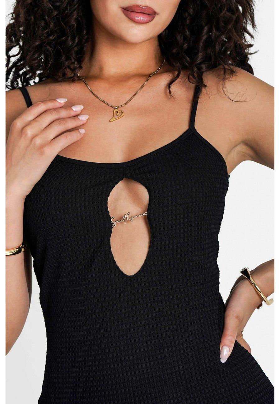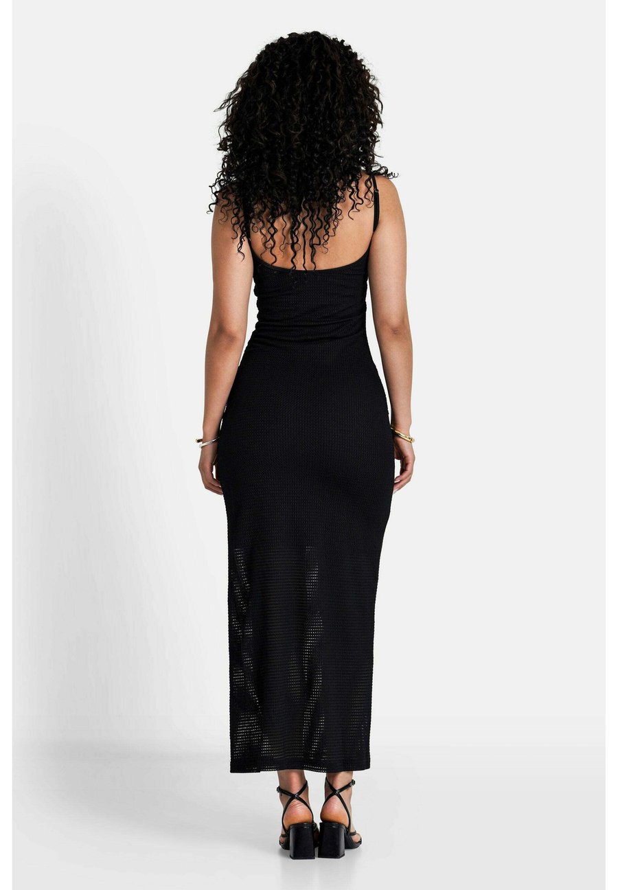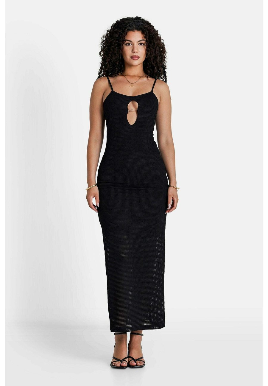 Длинное платье для женщин от бренда Sixth June. Вязаная ткань с подкладкой. Разрез по центру груди с логотипом в виде драгоценного камня, регулируемые бретели. Состав: полиэстер (90%) - эластан (10%). Принт: нет. Рисунок: однотонный. Талия: эластичная. Воротник: круглый. Фасон: приталенный. Длина: длинная. Рукава: на бретелях. Стиль: пляжный. Вырез: открытый сзадиМатериал и уход