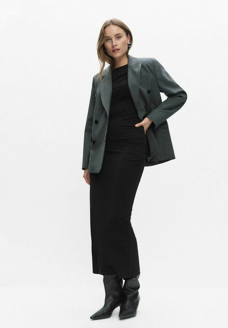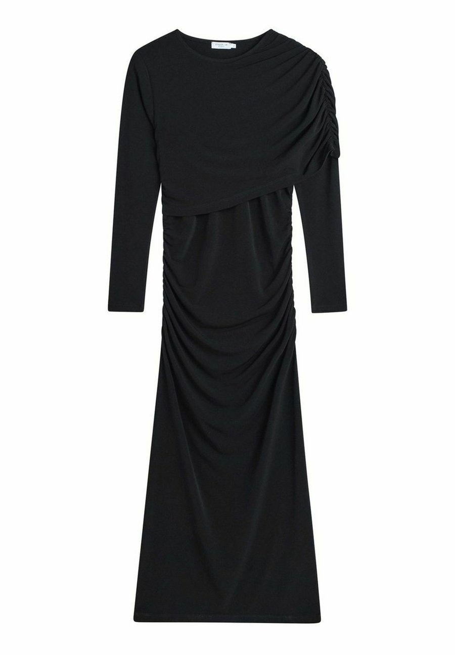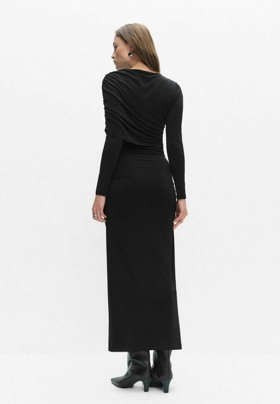 Платье Nikki от Stockh lm Studio - облегающее платье из эластичного трикотажа с асимметричной драпировкой на плечах, круглым вырезом и длинными рукавами. Элегантный стиль, доступен в двух цветах. Вырез горловины: круглыйМатериал и уход