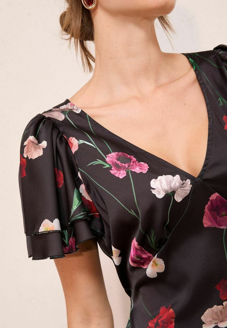 Платье Friends Like These REGULAR FIT V-NECK RUFFLE SLEEVE MIDI, Black Floral/Black