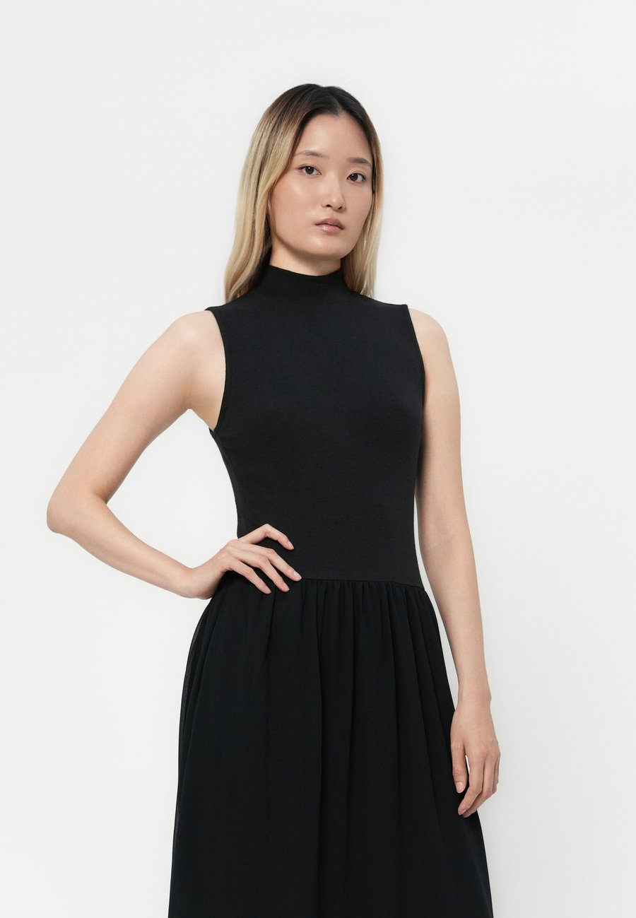 Платье GAP HIGH NECK MIXED MEDIA MAXI, Black/Black Denim