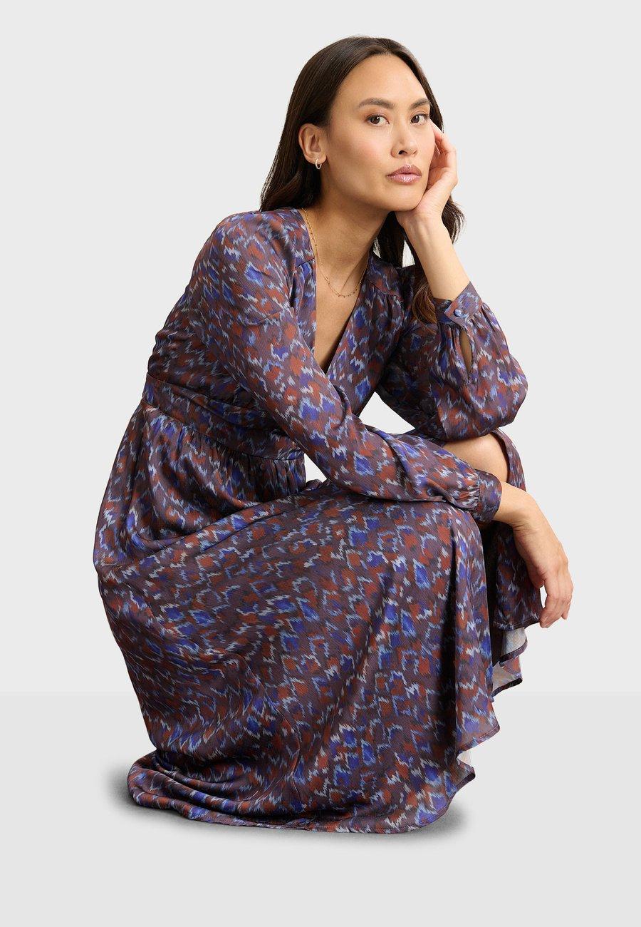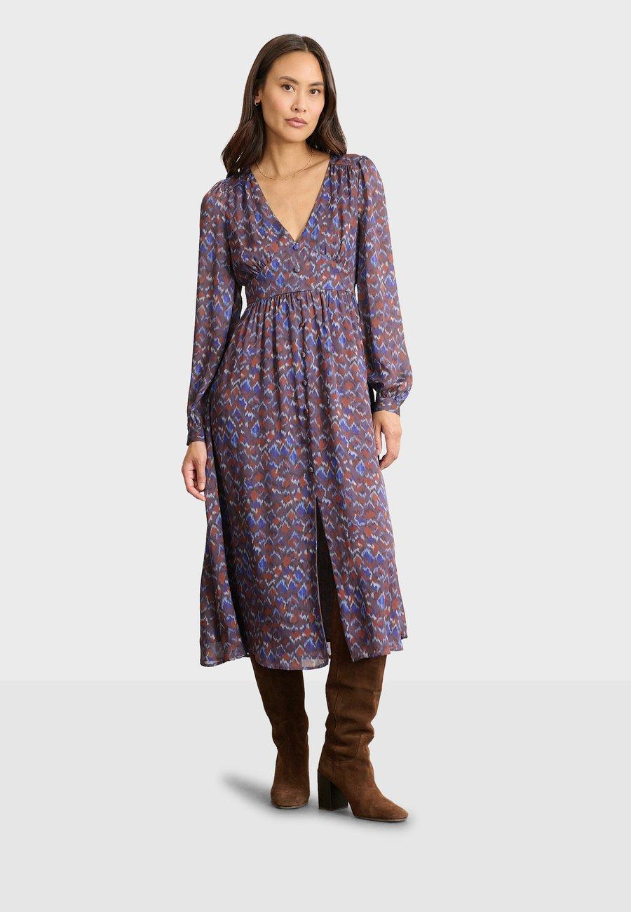 Диско-платье миди с длинными рукавами, V-образным вырезом, декоративными пуговицами спереди и элегантным разрезом. Изящное и утонченное изделие, идеально подходящее для того, чтобы подчеркнуть вашу фигуру и придать ей современный и утонченный вид. Вырез: Низкий V-образный вырезМатериал и уход
