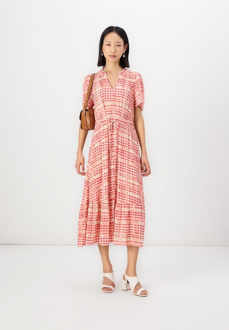 Длинное платье с узором и завязками на талии. С небольшими оборками и рюшами. Изготовлено из фактурного крепа. Вырез горловины: глубокий V-образный. Воротник: отложной. Застежка: на пуговицы. Узор: клетка. Детали: бант. Материал и уход: 70% хлопок, 28% полиэстер, 2% эластан. Инструкции по уходу: машинная стирка в щадящем режиме. Размер и посадка: рост модели 178 см, размер 36. Посадка: стандартная. Форма: прямая. Длина: до середины икры. Длина рукава: короткий. Ширина спинки: 40 см (размер 36). Общая длина: 122 см (размер 36)Доставка товаров осуществляется курьером или на пункт выдачи заказов.
