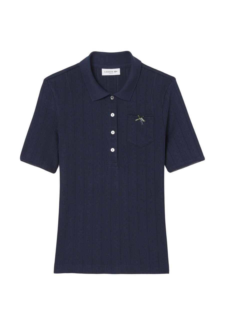 Элегантная трикотажная рубашка-поло с ажурным логотипом и уникальными деталями, включая металлического крокодила. Воротник: рубашка-полоМатериал и уход