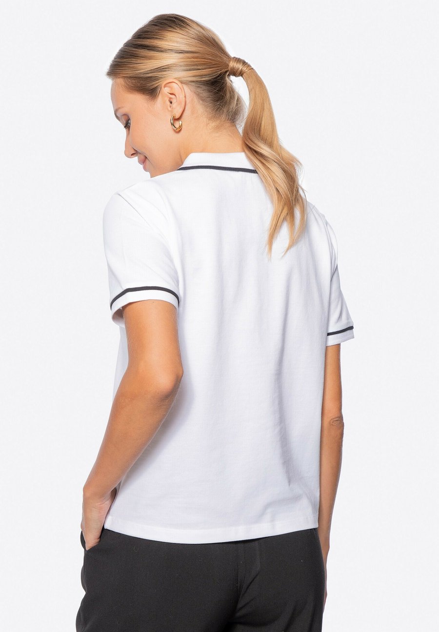 Поло - классический стиль с современным акцентом. Это поло - уникальное сочетание вневременного стиля с современной легкостью и комфортом. Изготовленное из мягкого натурального хлопка, оно обеспечивает ощущение свежести и комфорта в течение всего дня. Фирменный воротник-поло и планка с тремя пуговицами придают ему спортивную элегантность, а контрастная отделка на воротнике и рукавах добавляет изюминку, которая привлекает внимание и подчеркивает ваш личный стиль. Точная двойная строчка по низу гарантирует долговечность и безупречную посадку на многие сезоны. Для кого это предназначено? Если вам нравится сочетать классический стиль с современным шиком и вы цените свободу самовыражения через моду, это поло для вас. Это идеальный выбор, когда вы хотите чувствовать себя уверенно, комфортно и неповторимо. Наш совет: сочетайте поло со спортивной мини-юбкой и белыми кроссовками для свежего и энергичного образа. Для более повседневных случаев выберите облегающие джинсы, изящные балетки и легкий кардиган с минималистичной сумочкой. Воротник: рубашка поло