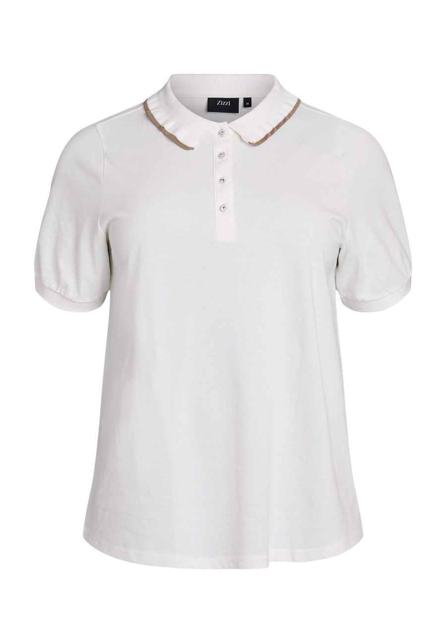 Поло Zizzi MIT STRASSSTEINEN UND RÜSCHENDETAILS, White Alyssum Comb/White