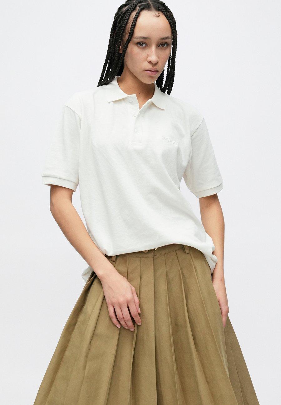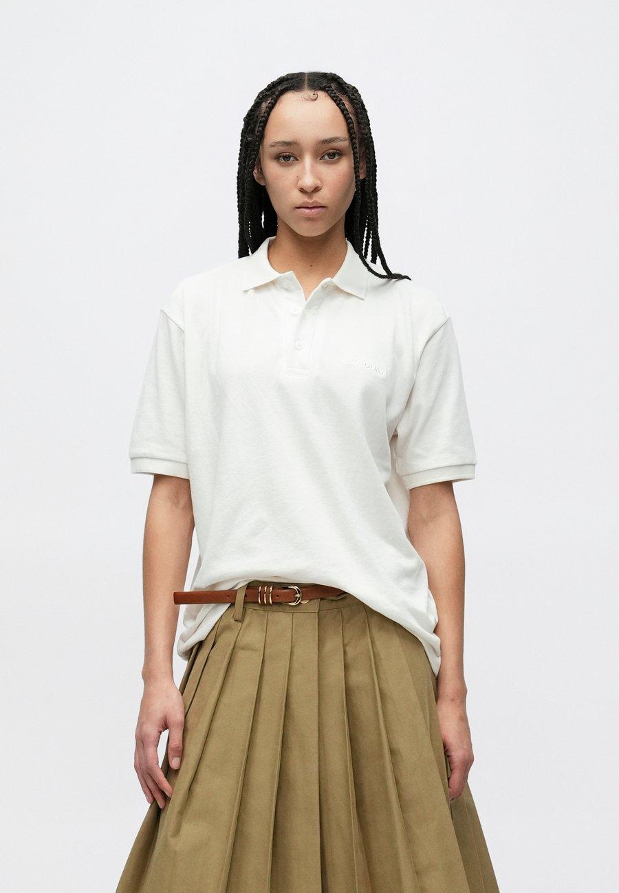Небольшая этикетка на уровне груди. Воротник: рубашка поло.Материал и уход