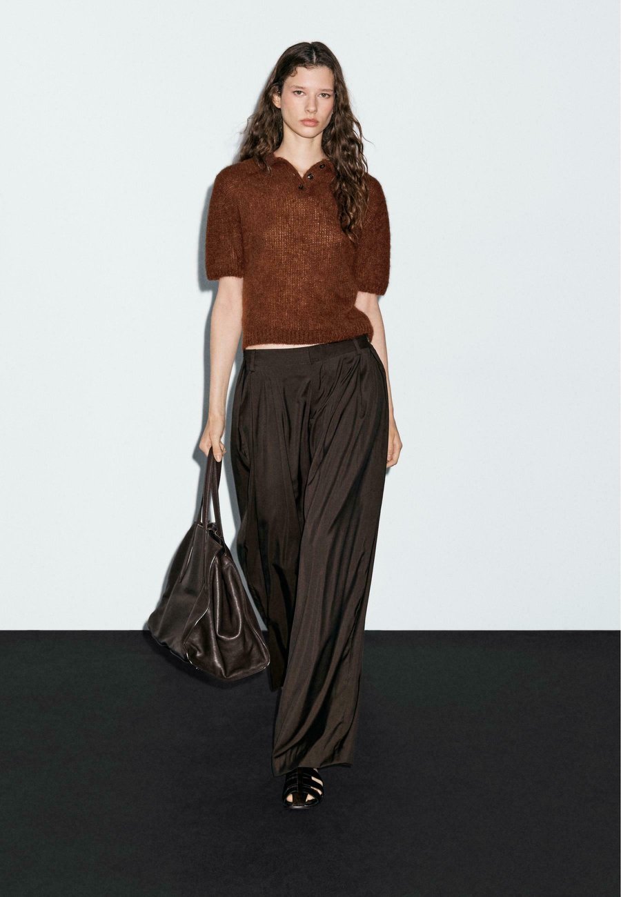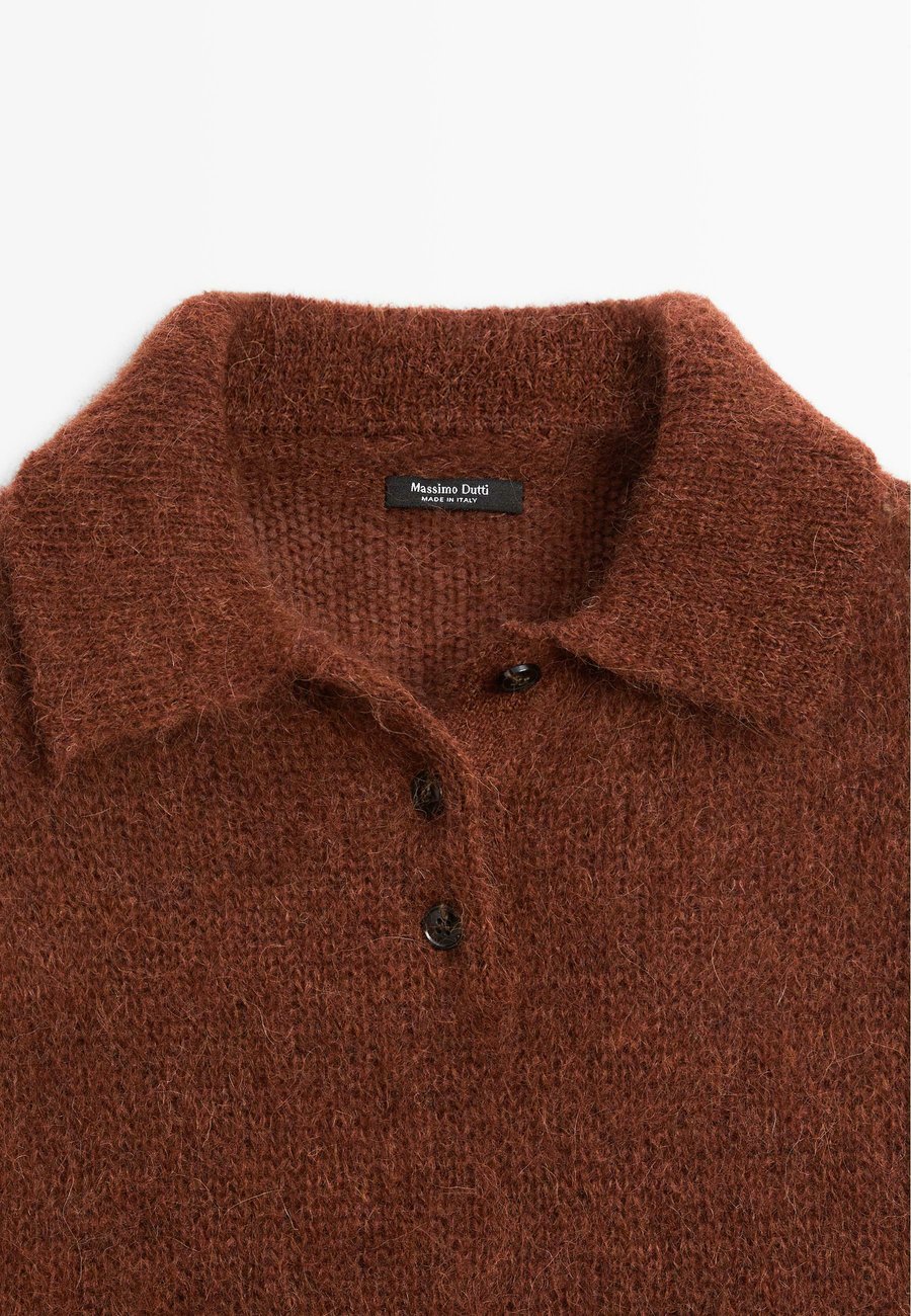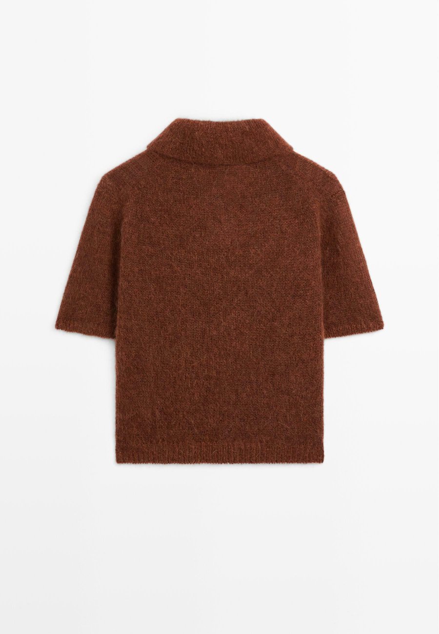 Короткие рукава. Ребристая отделка. Воротник-поло с застежкой на пуговицы. Вязаный свитер из ткани с добавлением альпаки. Мягкая отделка. Воротник: рубашка-полоМатериал и уход