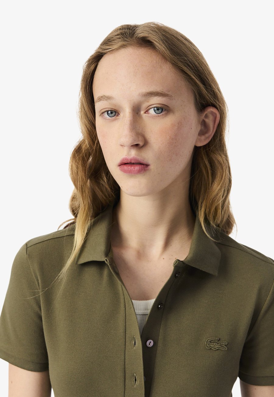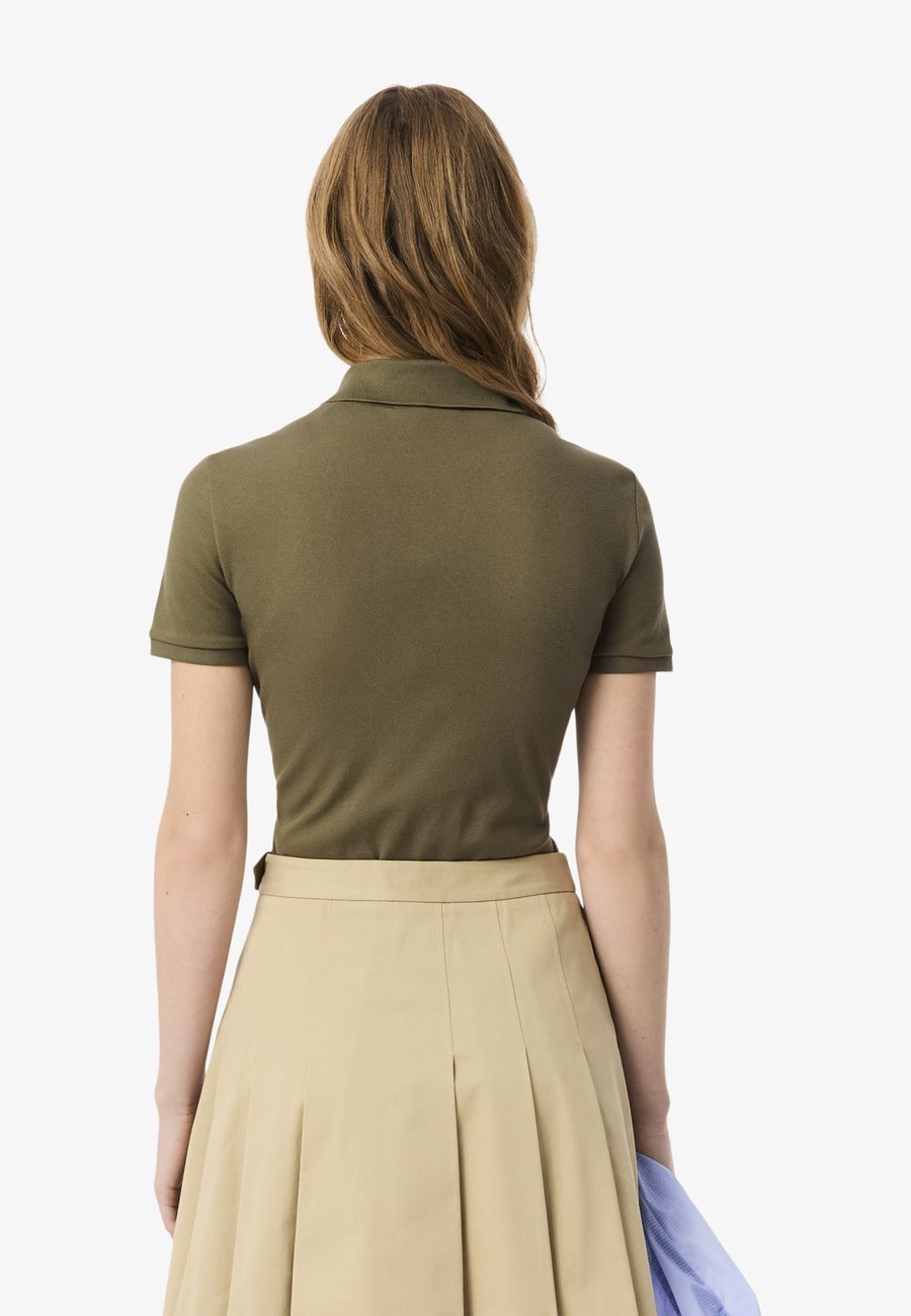 Женская рубашка-поло L.12.D приталенного кроя с глубокой застежкой на пуговицы - это современная элегантность Lacoste, выполненная из эластичной ткани мини-пике. Вырез: V-образныйМатериал и уход