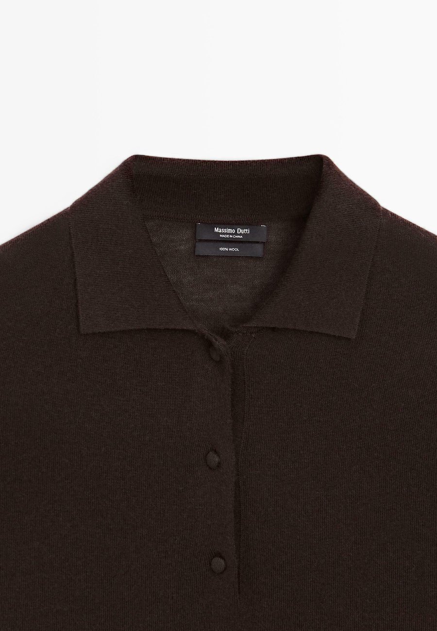 Свитер из 100% шерсти. Ребристая отделка. Воротник-поло с застежкой на пуговицы. Длинные рукава. Тонкая, легкая ткань. Детали с обтянутыми пуговицами. Воротник: рубашка полоМатериал и уход