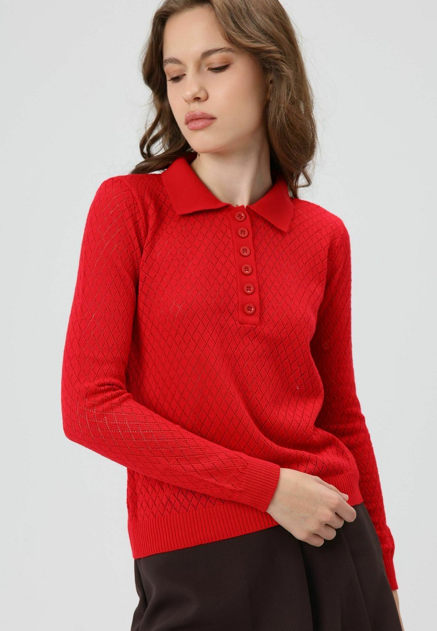 Мягкая трикотажная рубашка-поло с длинными рукавами и фактурной отделкой. Материал: 50% хлопок, 40% акрил, 10% полиэстер. Машинная стирка при 30°C. Наша модель ростом 177 см и носит размер S. Воротник: рубашка-полоМатериал и уход