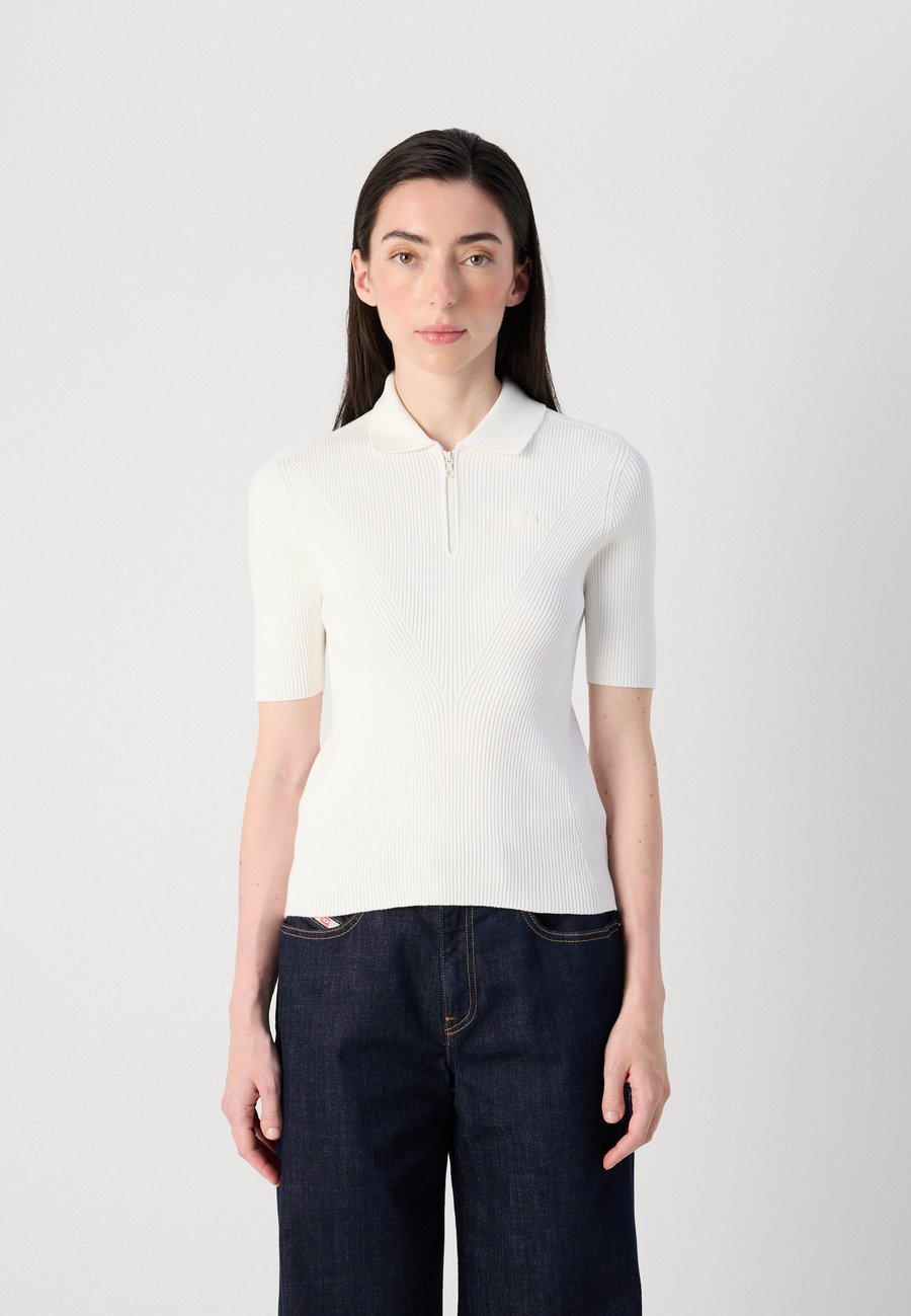 Женская рубашка-поло Lacoste с технологией 3D-вязания. Бесшовная ребристая вязка для идеальной посадки и свободы движений. Застежка-молния на воротнике добавляет элегантности. Воротник: рубашка полоМатериал и уход