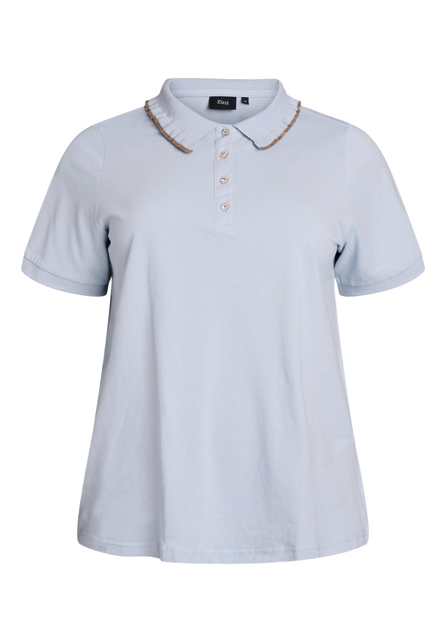 Поло Zizzi MIT STRASSSTEINEN UND RÜSCHENDETAILS, Niagara Mist Comb/Light Blue
