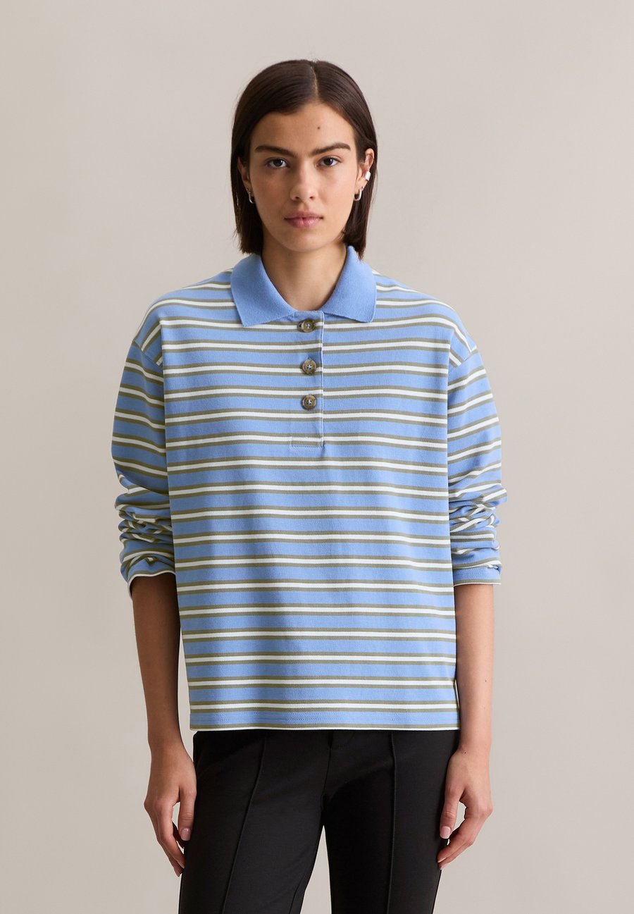 Поло Marc O'Polo DENIM LANGARM AUS GESTREIFTEM, Medium Blue/Blue
