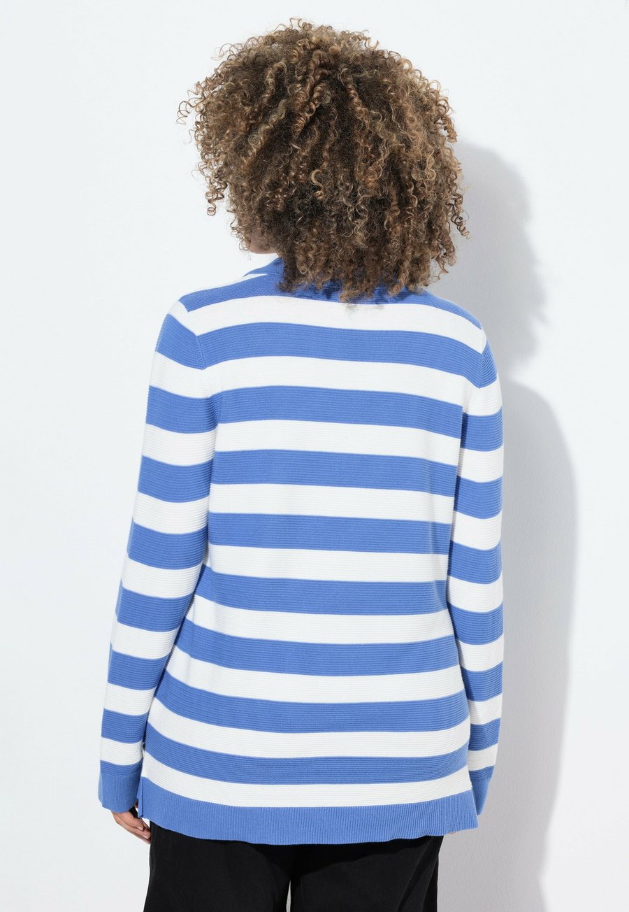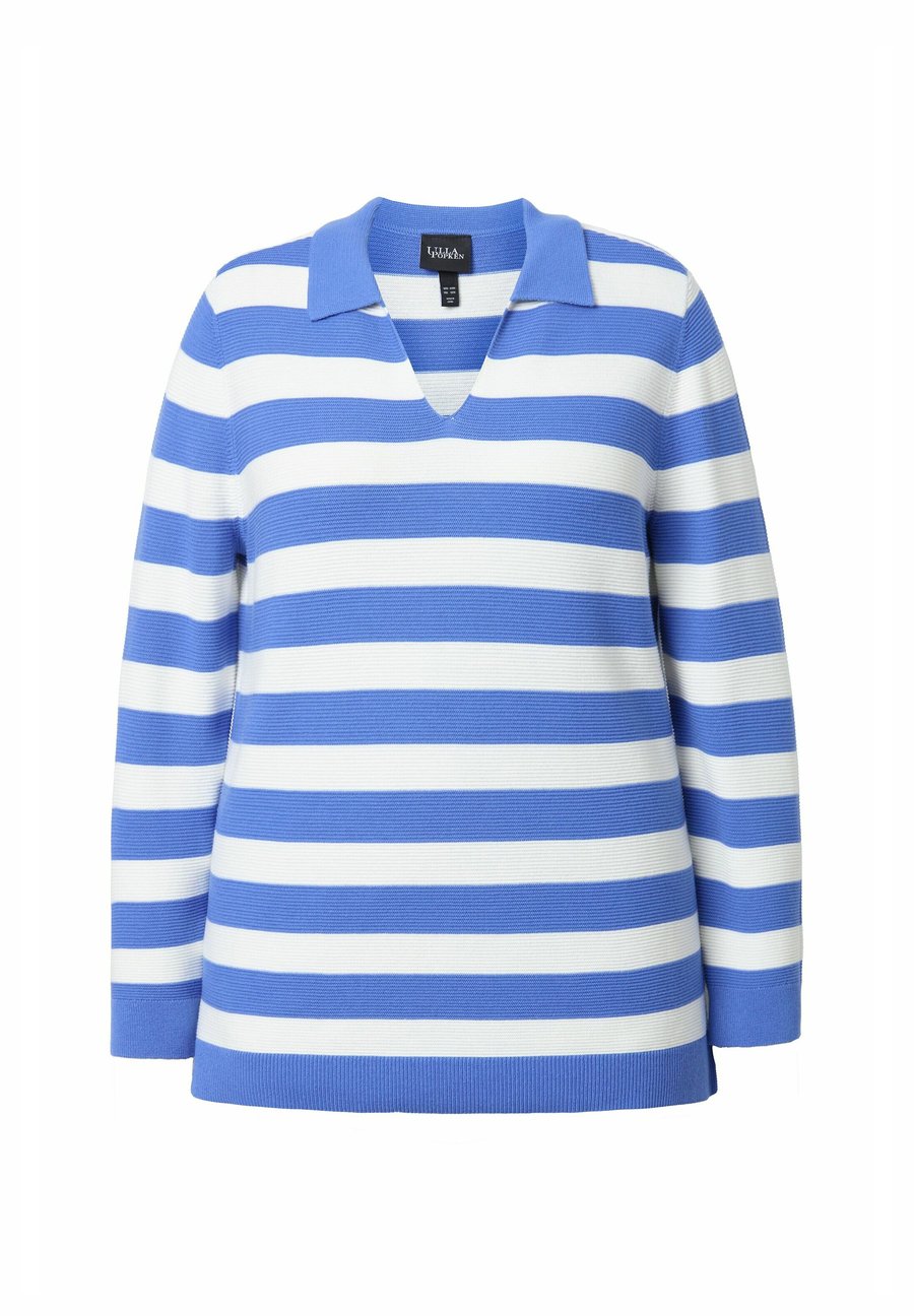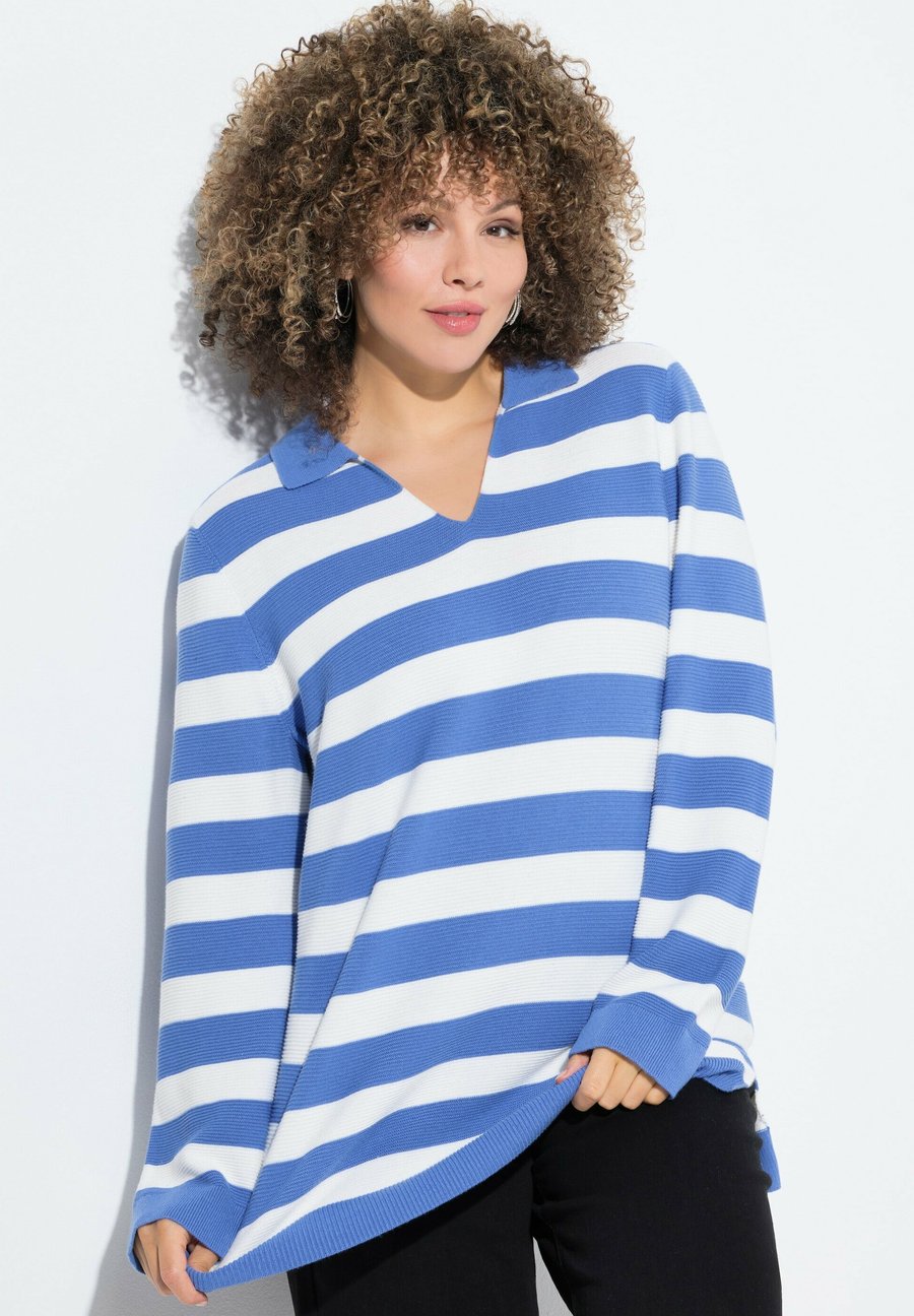 Поло Ulla Popken STRIPED COLLAR LONG SLEEVE, Aegean Blue/Light Blue
