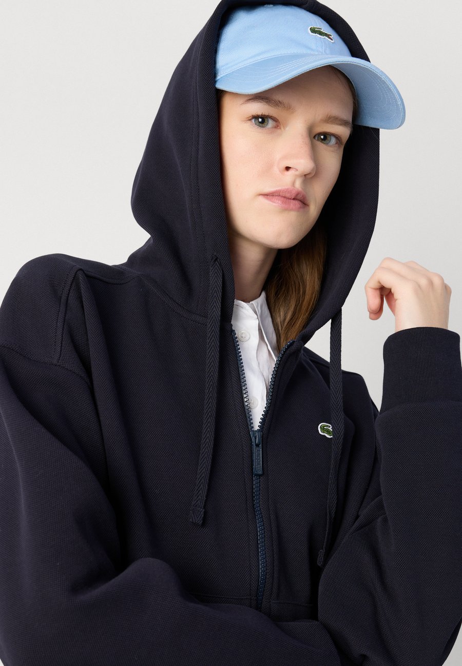 Толстовка на молнии, сочетающая в себе модный и спортивный опыт Lacoste, изготовлена из двухстороннего пике, имеет свободный крой и минималистичный дизайн. Воротник: КапюшонМатериал и уход