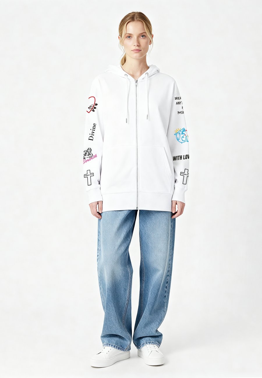 Худи на молнии из высококачественного органического хлопка - 350 г/м². Стандартный крой. Создано по мужскому силуэту оверсайз - сверьтесь с таблицей размеров для оптимальной посадки. Таблица размеров: Мужчины: выберите свой обычный размер. Женщины: выберите на один размер меньше, чем обычно. Таблица размеров для женщин: XS: 150-160 см; XS: 160-170 см; S: 170-180 см. Таблица размеров для женщин: XS: 150-160 см; S: 160-170 см; M: 170-180 см. Подчеркните свой повседневный стиль с помощью этой высококачественной худи на молнии, изготовленной из 100% органического хлопка, сертифицированного GOTS. Плотная ткань 350 г/м² обеспечивает идеальный баланс комфорта, тепла и долговечности. Застежка-молния по всей длине гарантирует универсальность, а структурированный стандартный крой создает лаконичный, вневременной силуэт. Высокоточная вышивка с большим количеством стежков добавляет изысканные детали, рассчитанные на долгий срок службы. Мягкая, но прочная, эта толстовка, изготовленная с соблюдением этических норм, сочетает в себе экологичность и мастерство, обеспечивая долговечность и стиль. Воротник: КапюшонМатериал и уход