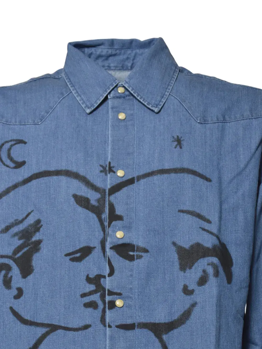 Синие рубашка с графическим принтом, длинными рукавами и классическим воротником