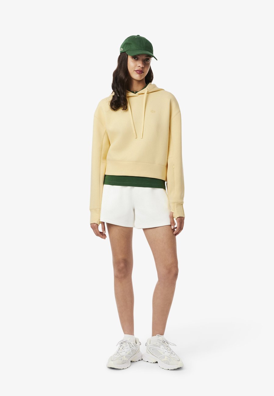 Эта толстовка сочетает в себе модный и спортивный стиль с 90-летним опытом Lacoste. Особенности: двусторонняя хлопковая ткань, укороченный крой и боковой разрез на молнии. Воротник: КапюшонМатериал и уход