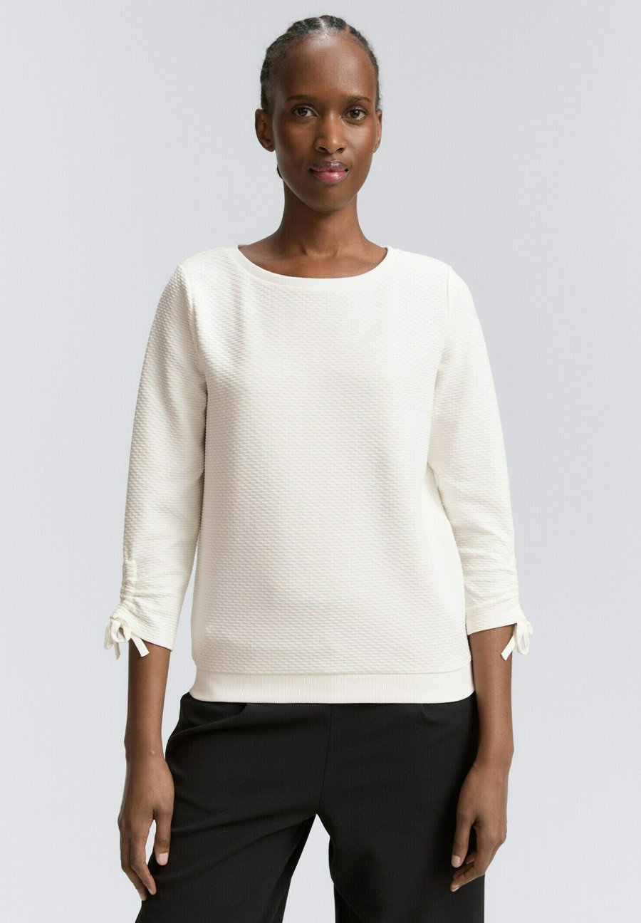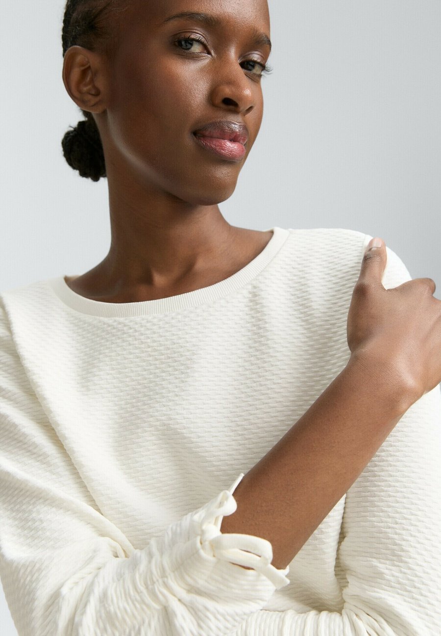 Текстурированная толстовка со шнуровкой по краю рукава для сборки и фиксации рукавов. Вырез горловины: круглый.Материал и уход