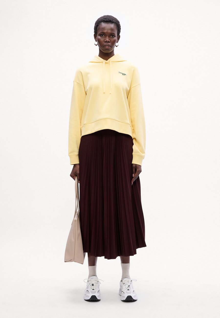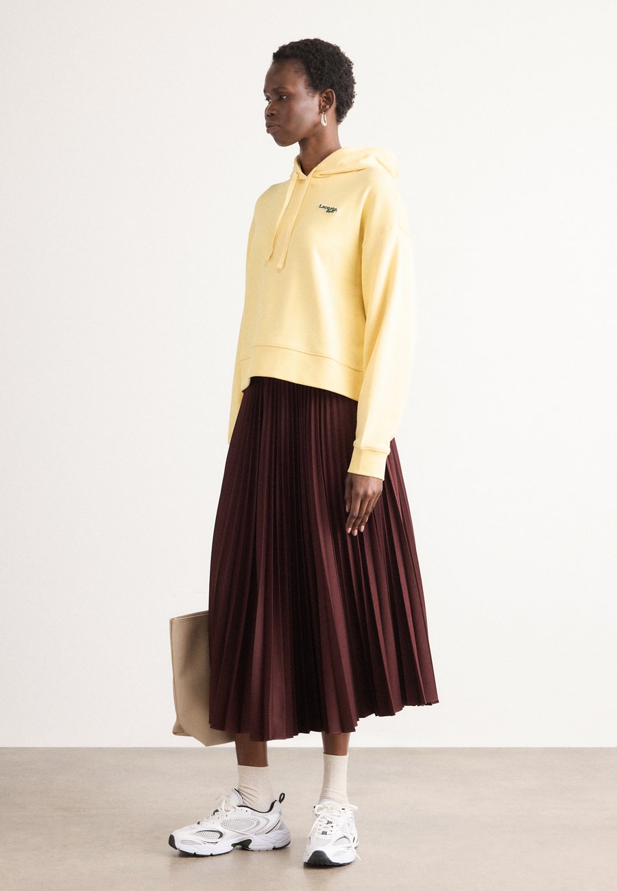 Женская базовая толстовка из неворсистого флиса с объемным кроем для тепла и комфорта. Нашивка на груди для аутентичности. Воротник: КапюшонМатериал и уход