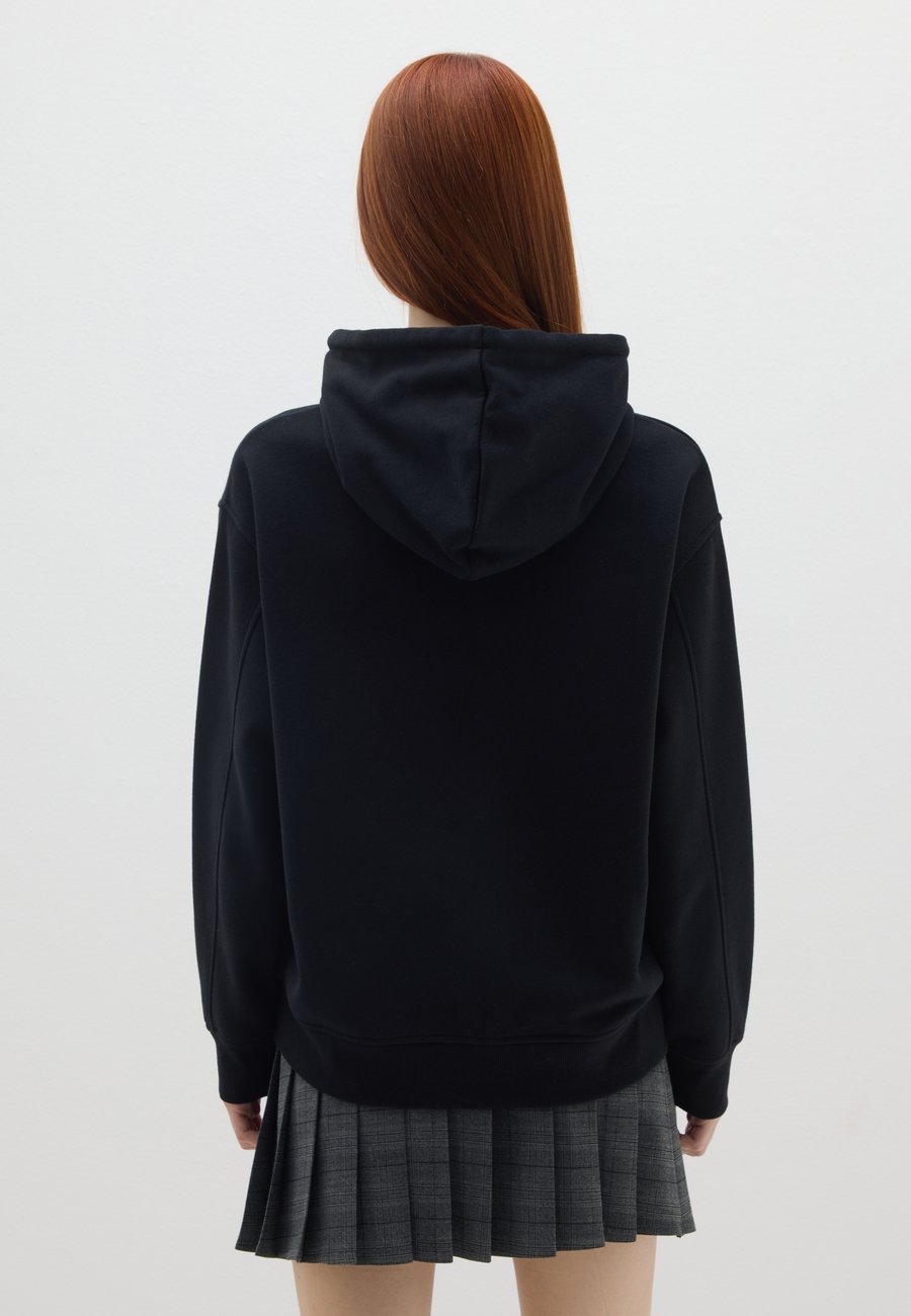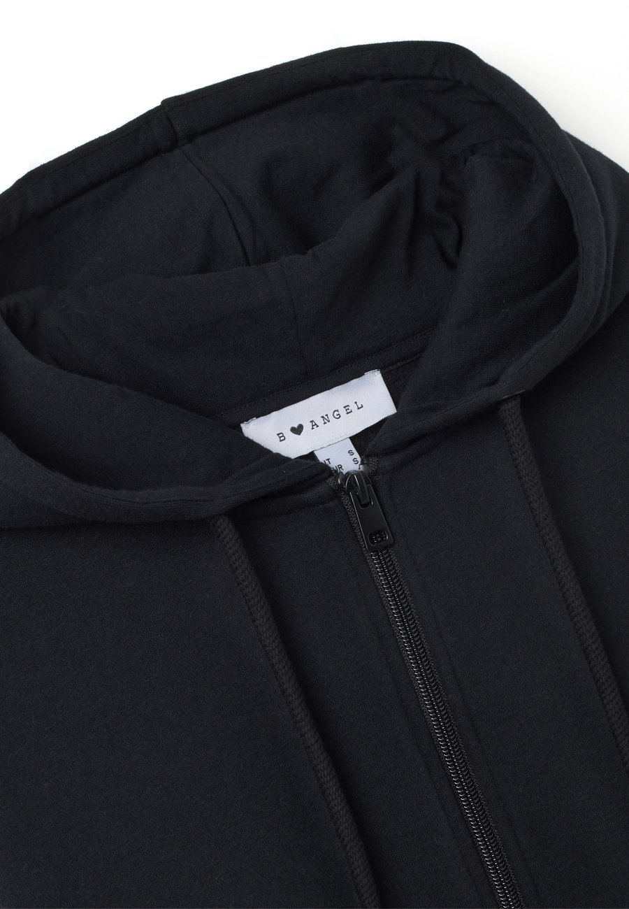 Черная толстовка из коллекции B.Angel - незаменимый элемент вашего гардероба. Изготовленная из хлопковой смеси, она обеспечивает невероятный комфорт и мягкость на ощупь. Свободный крой и застежка-молния дополняют образ, делая его практичным и универсальным, идеально подходящим для стильного осенне-зимнего сезона. Эта толстовка с капюшоном и передними карманами идеально подходит для ношения поверх другой одежды. Вырез: ХенлиМатериал и уход