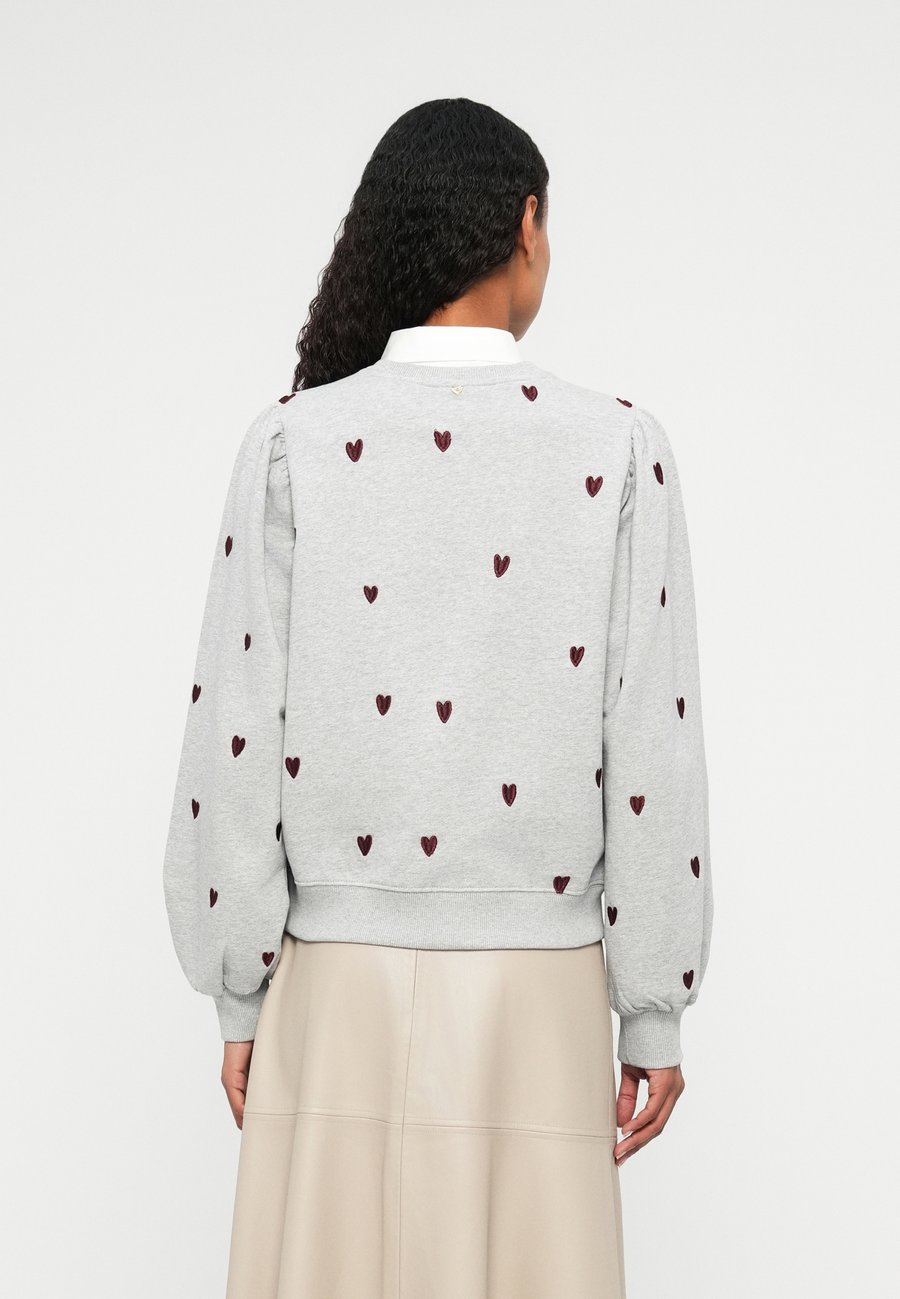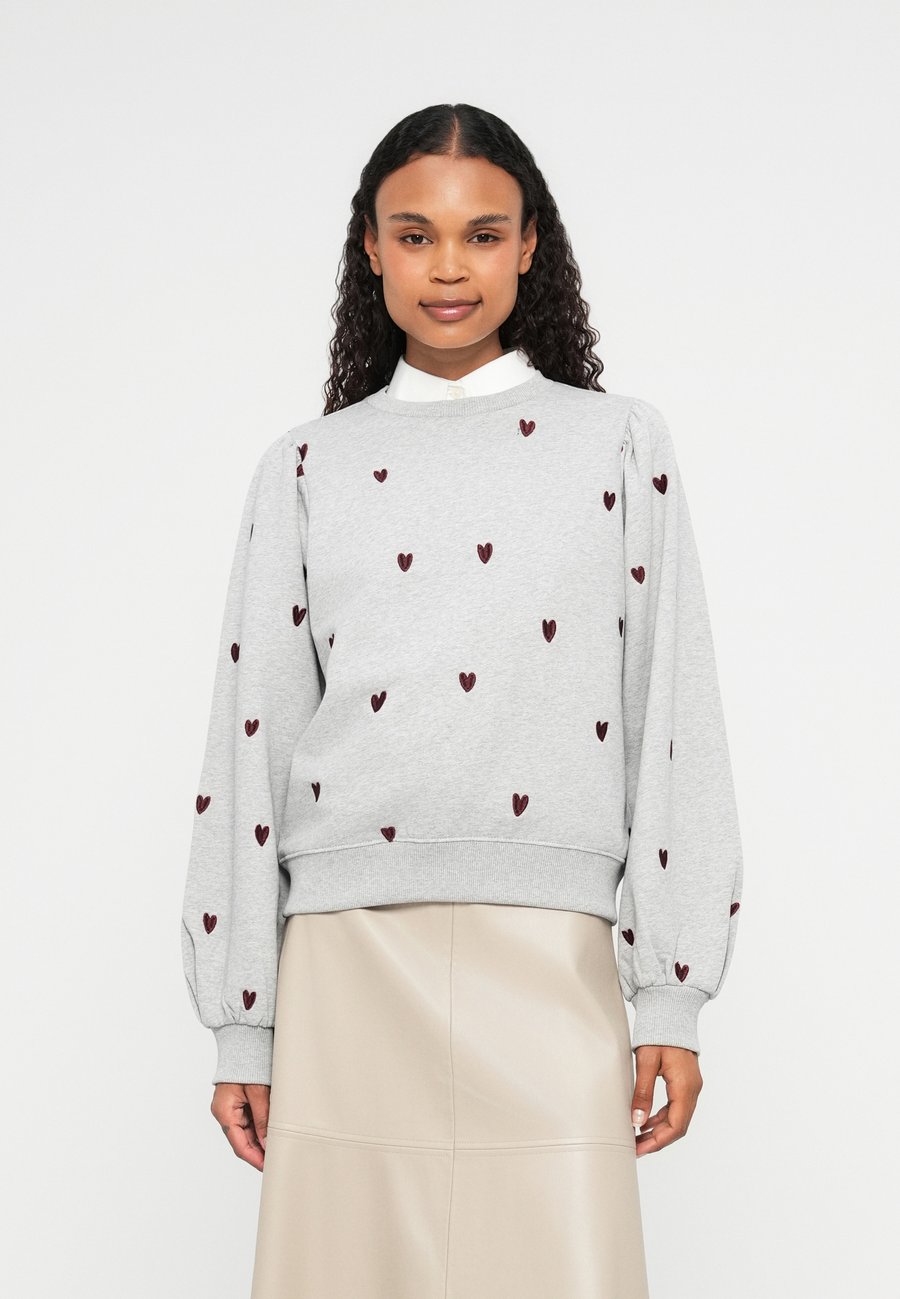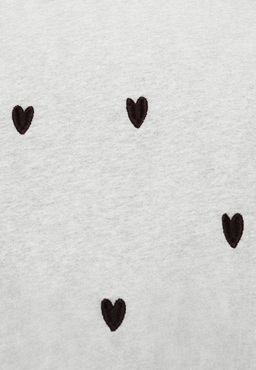 Этот серый свитер изготовлен из 100% органического хлопка и имеет удобный стандартный крой. Розовые сердечки разбросаны по всему свитеру, что делает его ярким акцентом в вашем повседневном образе. Вырез: КруглыйМатериал и уход