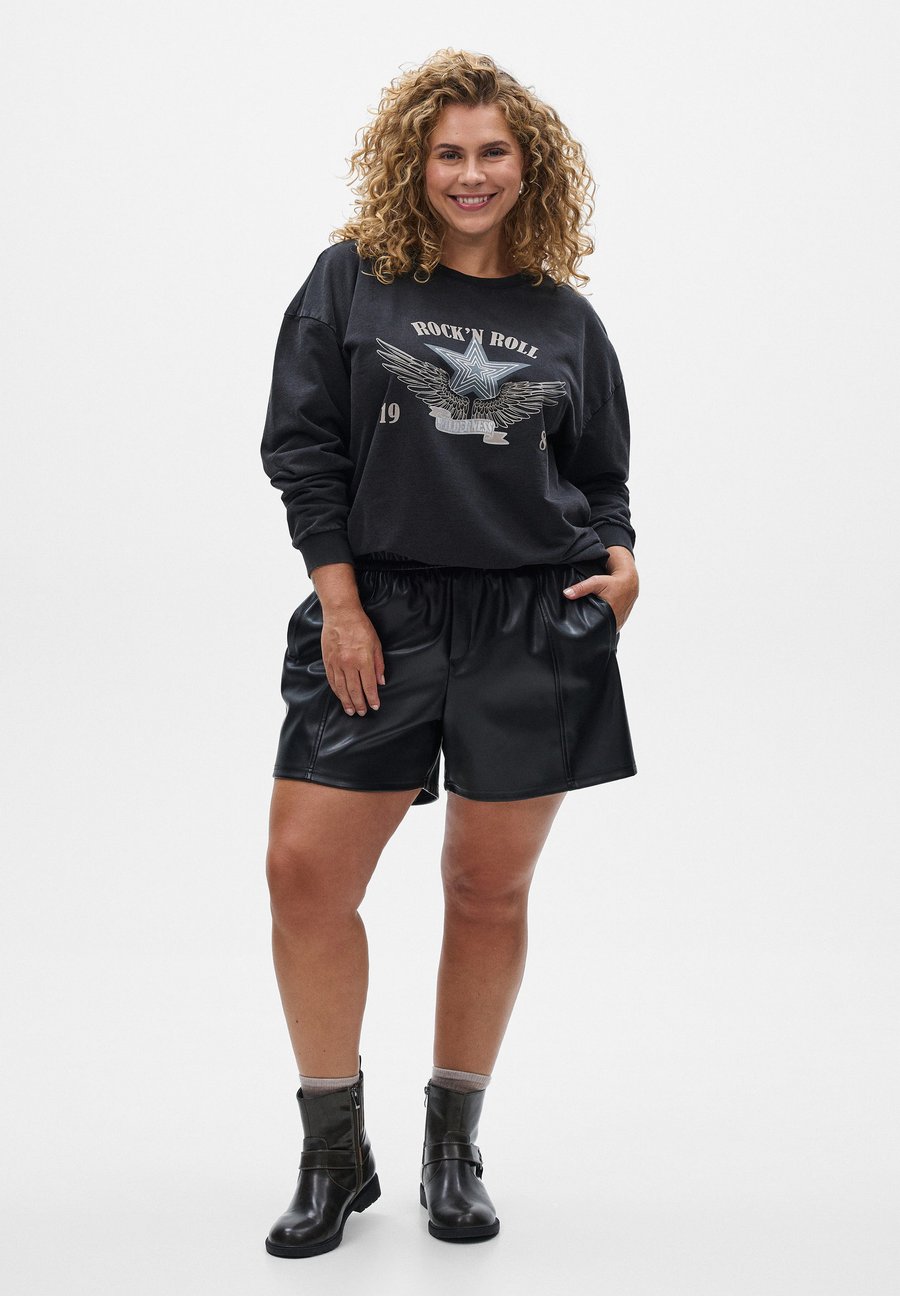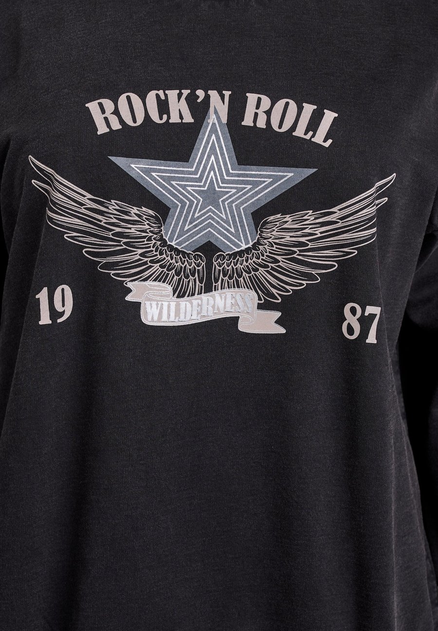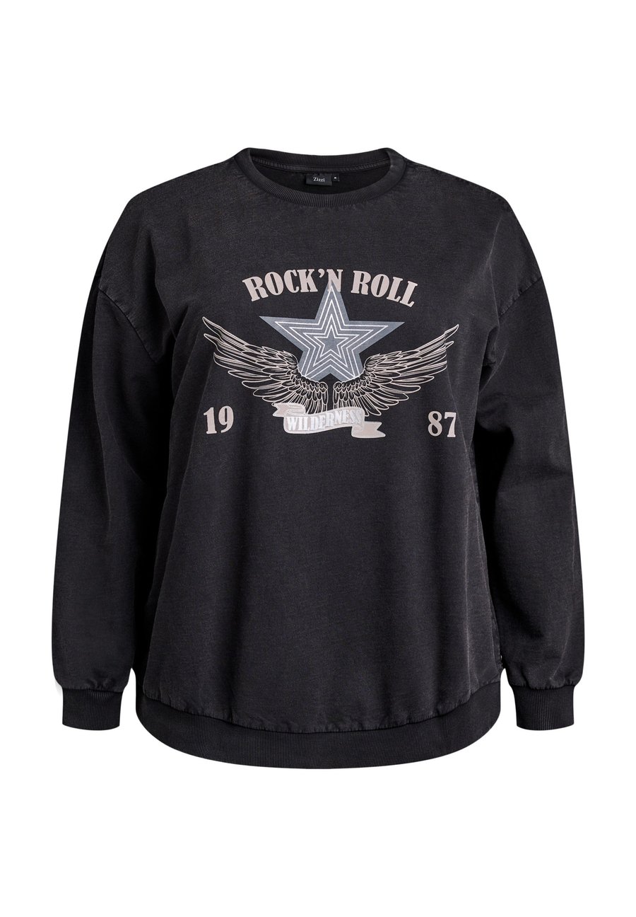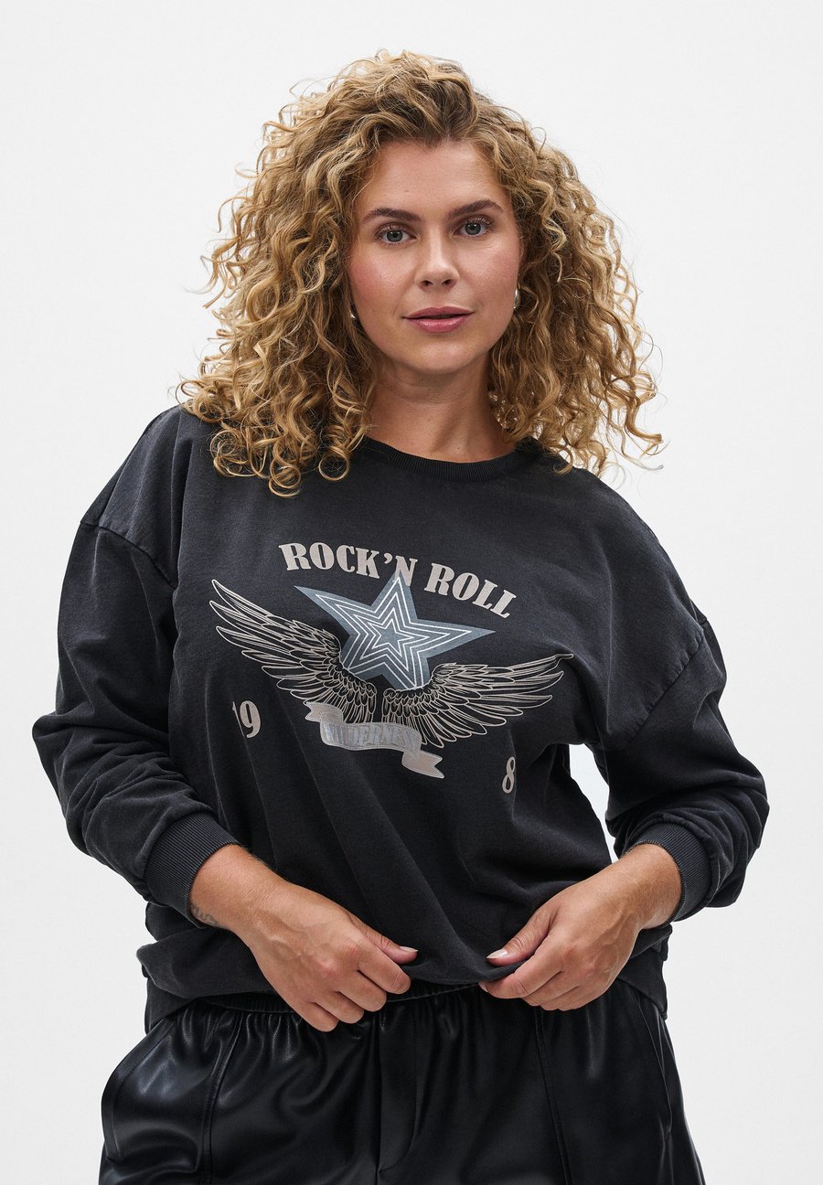 Толстовка Zizzi IN VERWASCHENER OPTIK MIT STATEMENT, Grey Acid Washed/Dark Grey