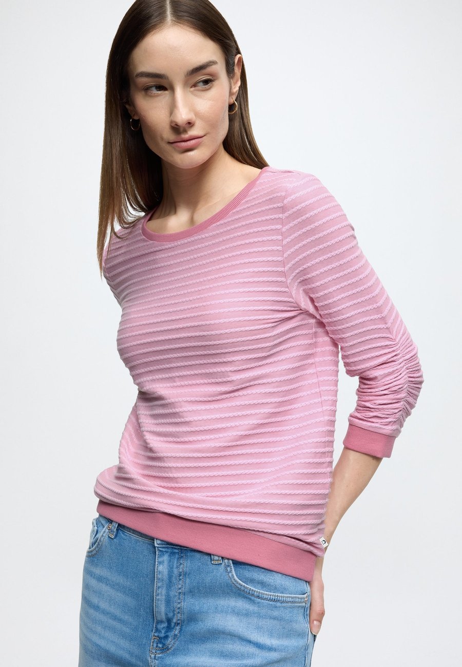 Полосатая толстовка с фиксированными римскими рукавами из фактурной жаккардовой ткани. Вырез горловины: круглый.Материал и уход