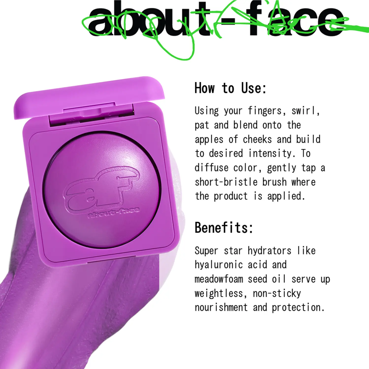 Пальцами нанесите средство на яблочки щек, слегка похлопывая и растушевывая, до достижения желаемой интенсивности. Для придания более мягкого оттенка слегка постучите короткощетинной кистью по нанесенному продукту.Ингредиенты
