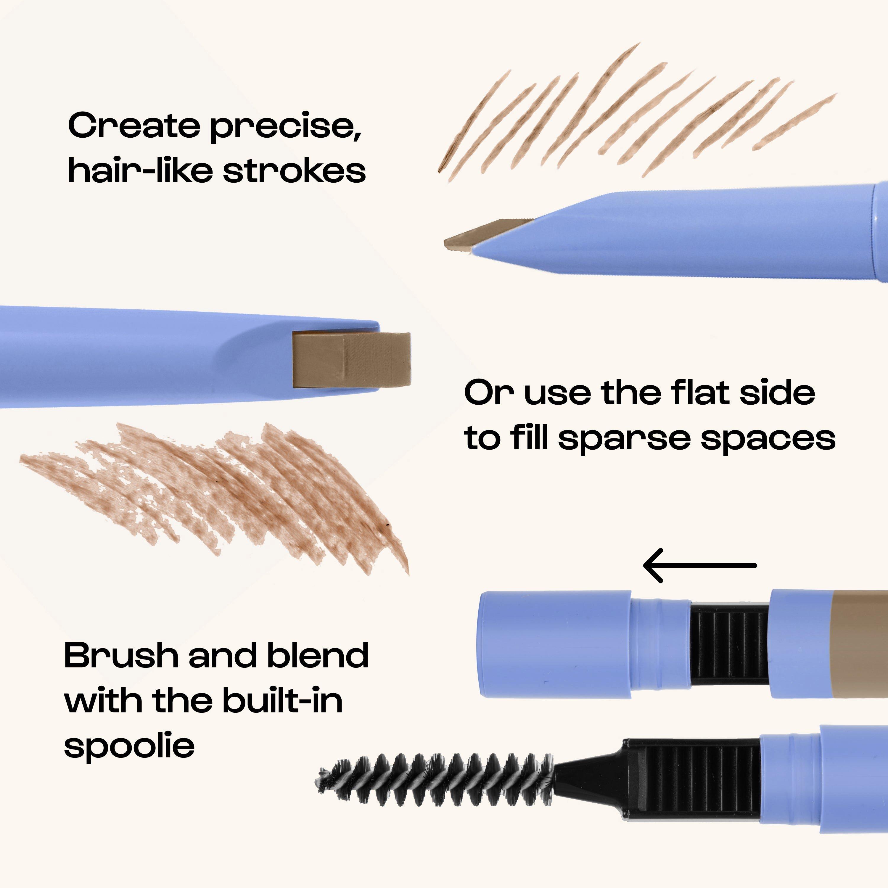 * Заполните брови короткими штрихами, имитирующими волоски, используя скошенный кончик.Ингредиенты
