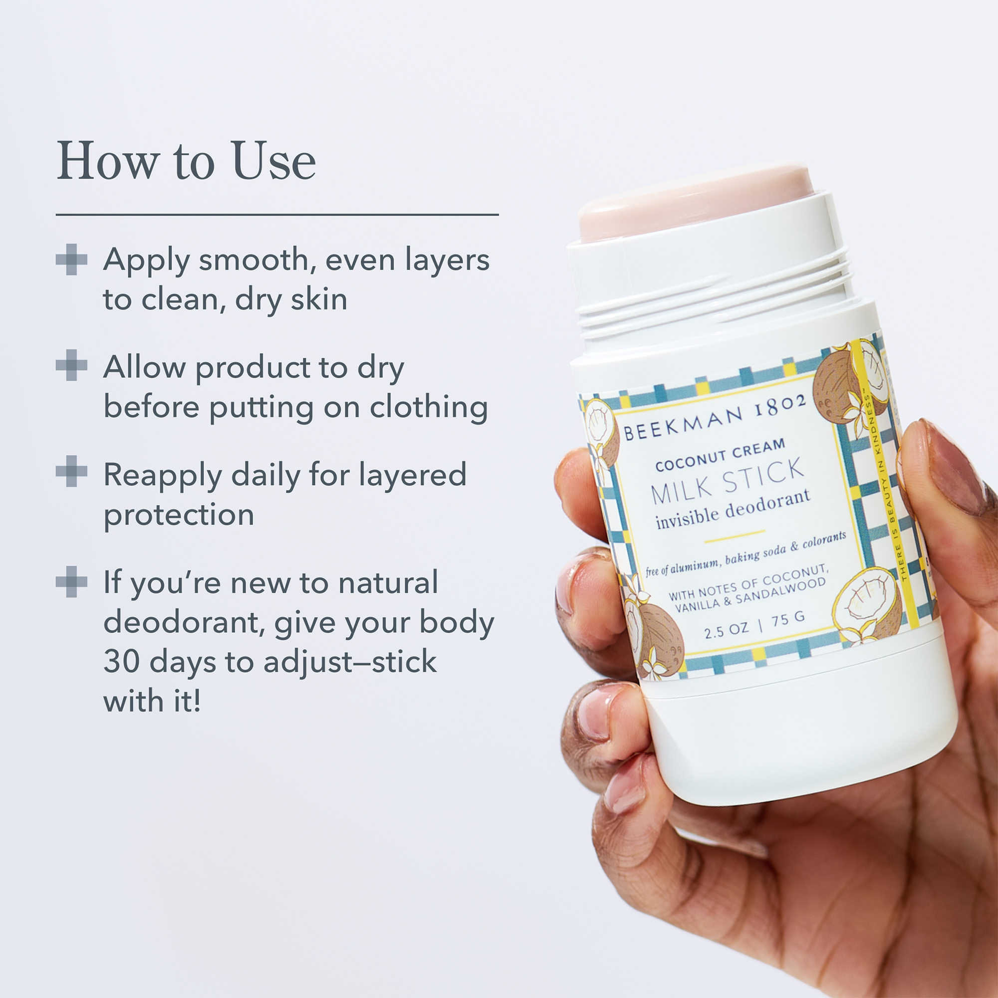Используйте ежедневно или по мере необходимости. Нанесите ровный слой на чистую сухую кожу и дайте высохнуть, прежде чем надевать одежду.Ингредиенты