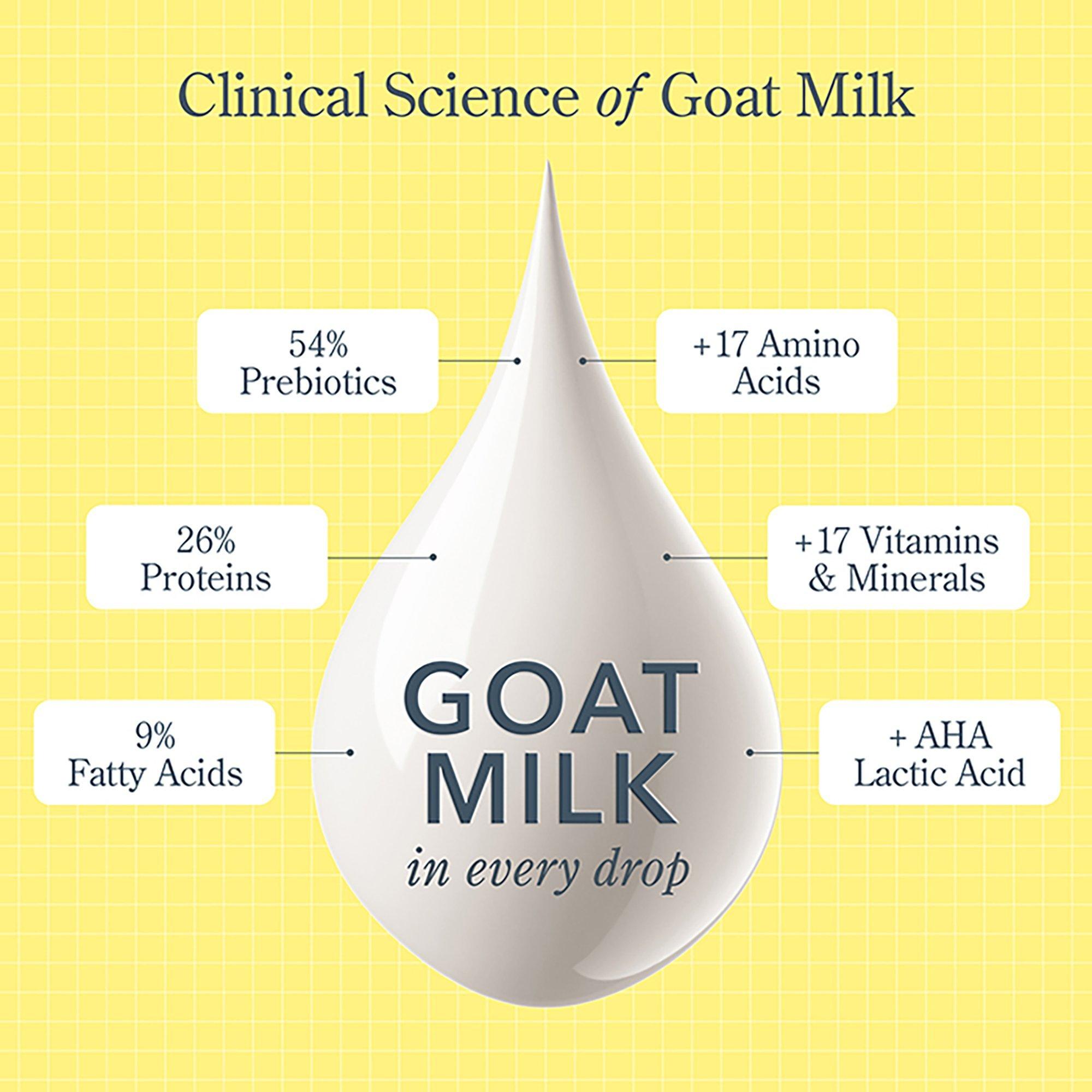 - Козье молоко улучшает здоровье кожи, имея тот же pH, что и человеческая кожа, и богато молочной кислотой, витаминами и минералами, которые помогают обновлять и укреплять кожу