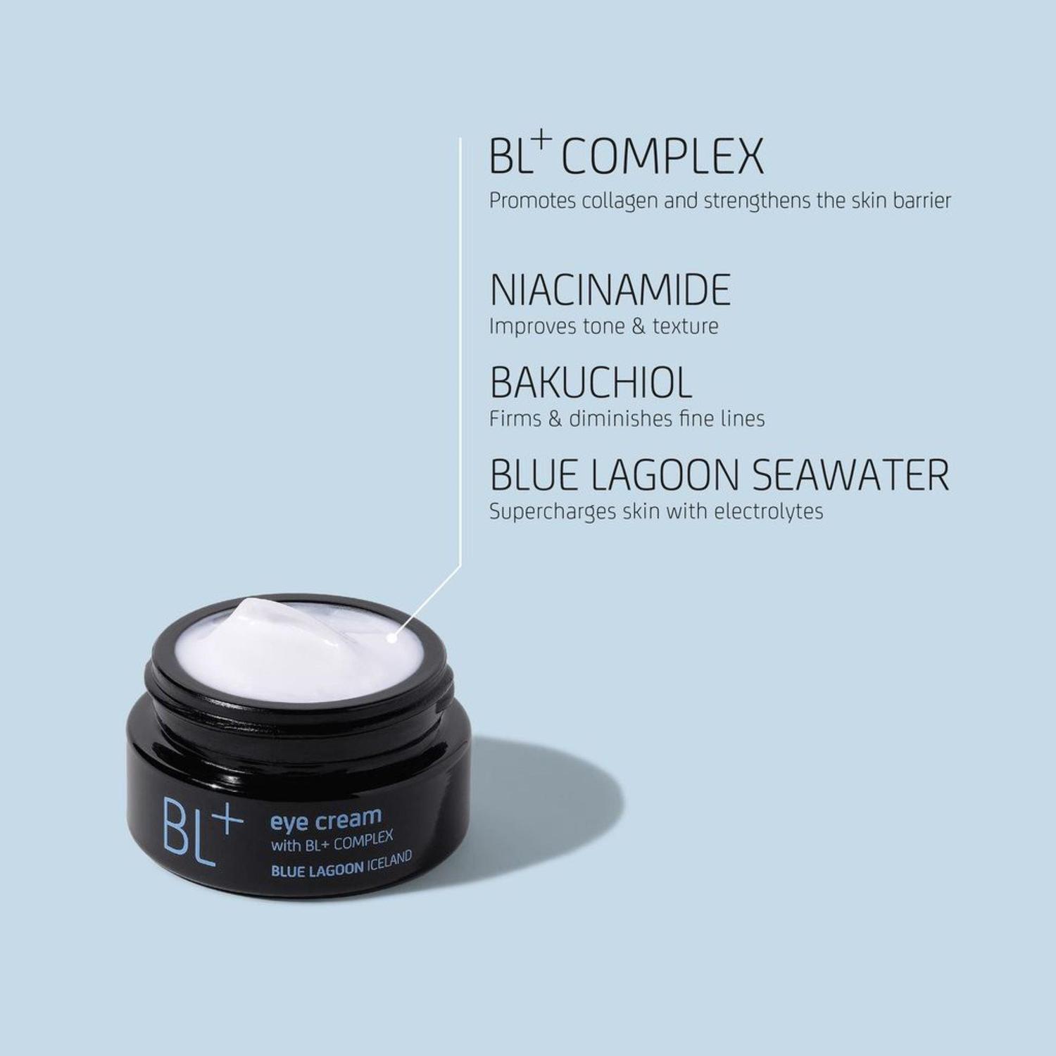 - Комплекс BL+ сочетает в себе восстанавливающие свойства запатентованных микроводорослей Blue Lagoon и кремния с усовершенствованной системой доставки, разработанной для глубокого проникновения в кожу. Комплекс BL+ стимулирует синтез коллагена, предотвращает его разрушение и укрепляет кожный барьер.