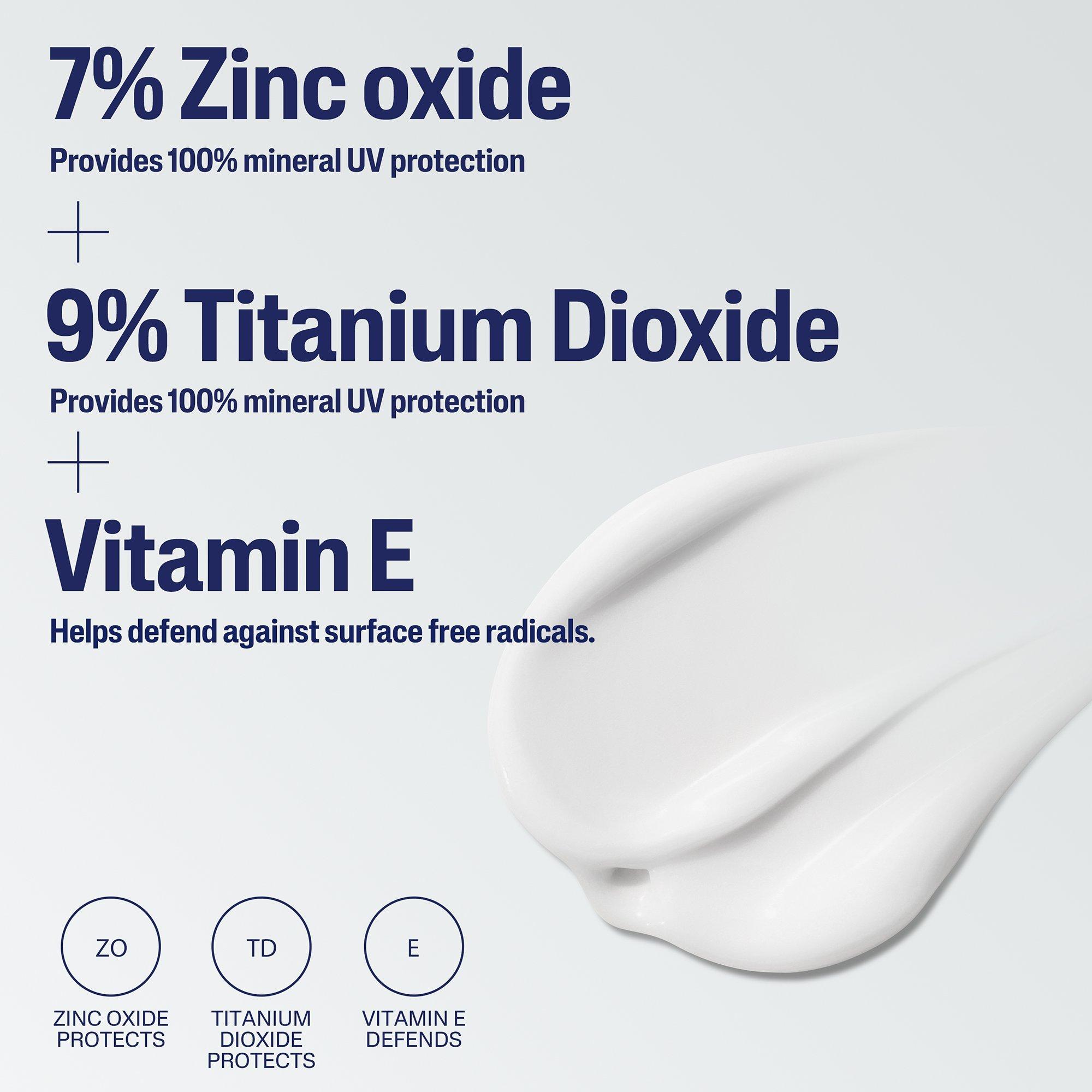 Active: Titanium Dioxide 9.0%, Zinc Oxide 7.0%.