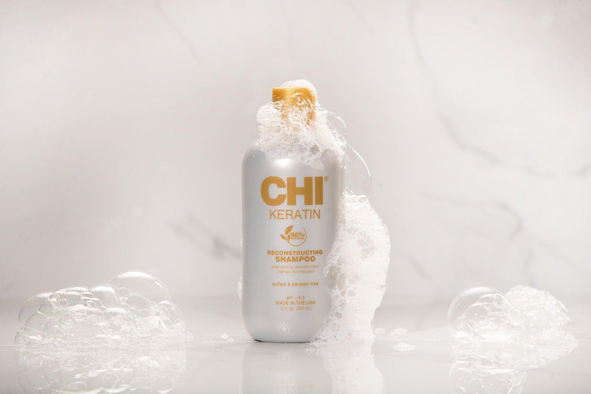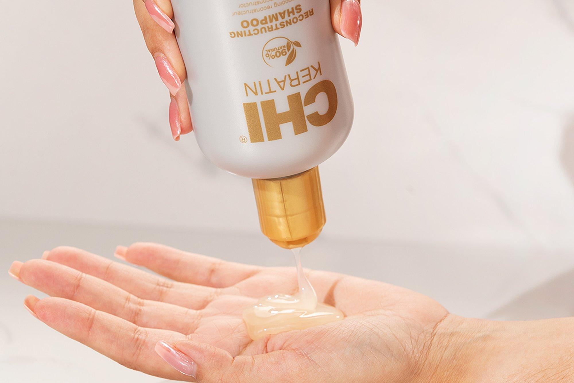 Нанесите достаточное количество шампуня CHI Keratin на влажные волосы. Равномерно распределите по волосам от корней до кончиков. Смойте и повторите.Ингредиенты