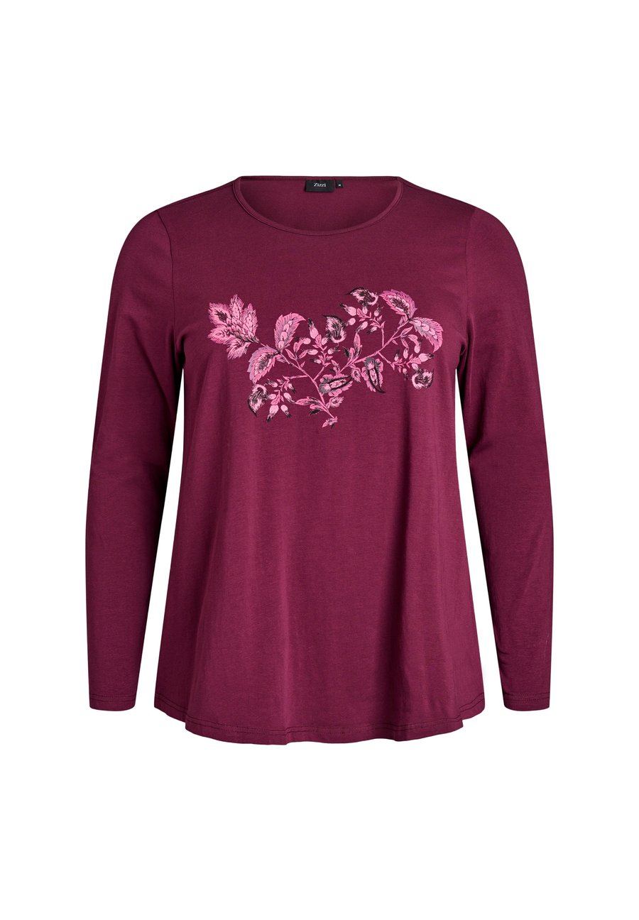 Пижамный топ Zizzi MIT TEXT, Fig Wpaisley/Mottled Bordeaux