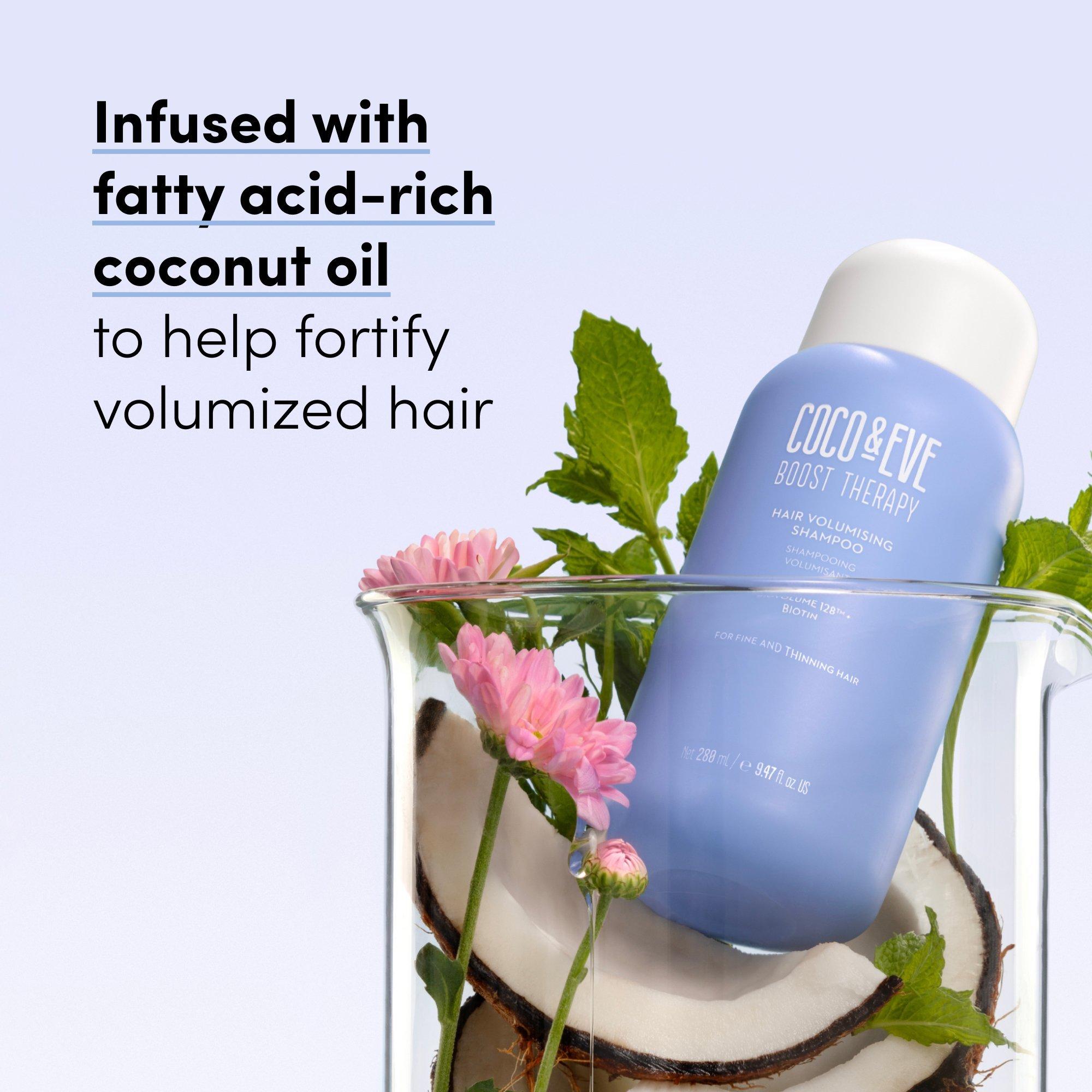 Нанесите на влажные волосы и кожу головы. Помассируйте до образования пены, затем тщательно смойте. После этого используйте кондиционер для придания объема волосам Coco & Eve. Можно использовать ежедневно.Ингредиенты