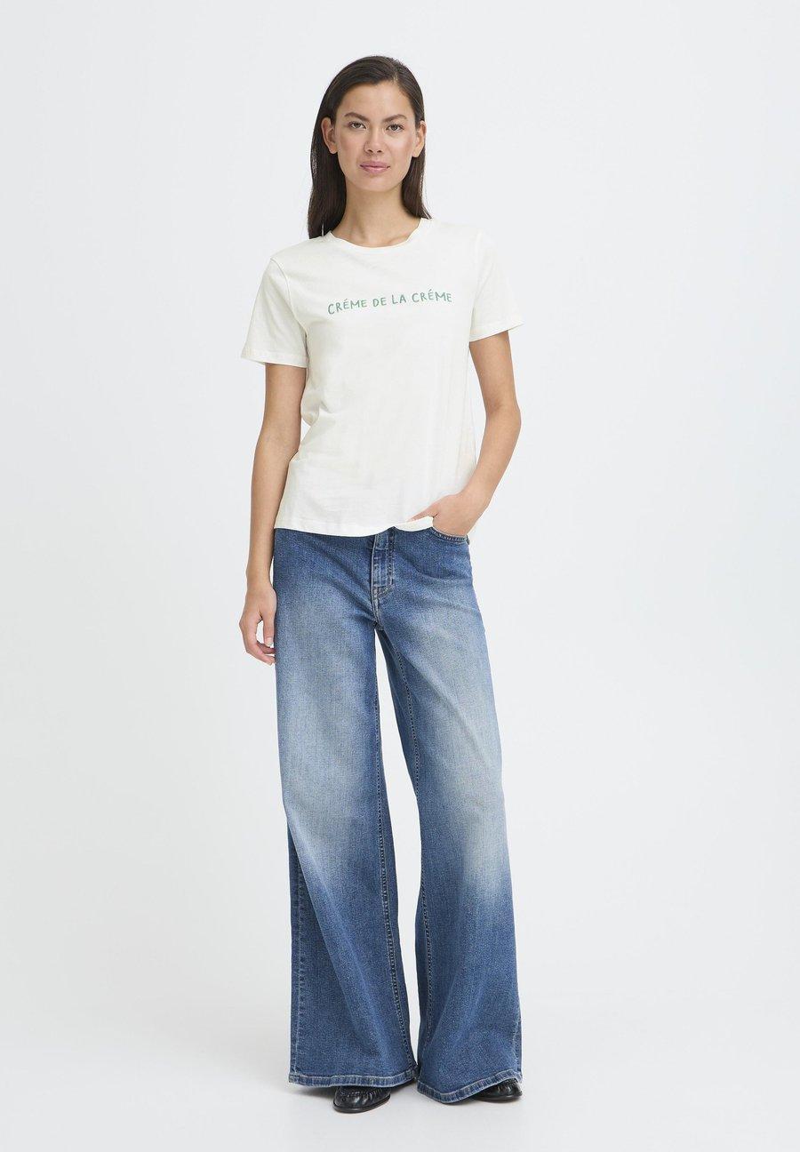Футболка ICHI IHMAMBO SS, Cloud Dancer W.Pine Green Emb./Off-White