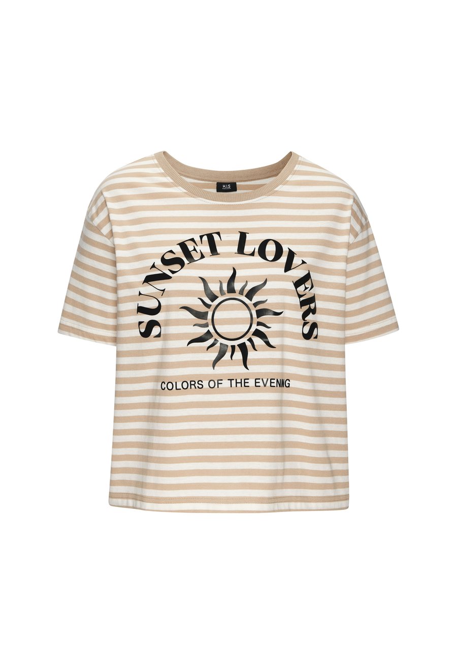 Футболка H.I.S Print T-shirt, Camelfarben Gestreift/Camel