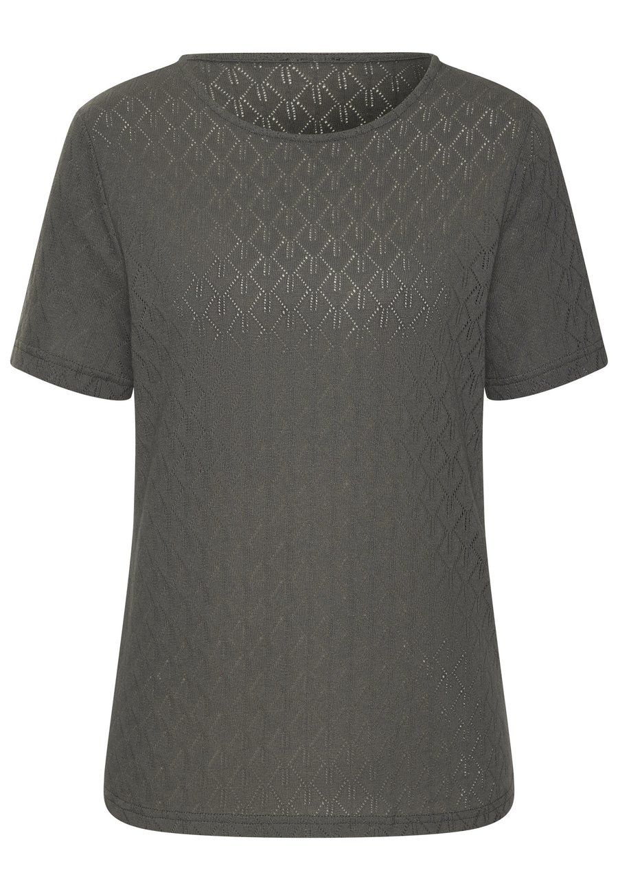 Вязаная рубашка от Vivance. Красивый ажурный узор. Короткий рукав. Круглый вырез. Приталенный крой. Высококачественная хлопковая смесь. Вырез горловины: КруглыйМатериал и уход