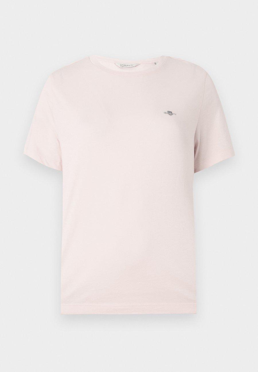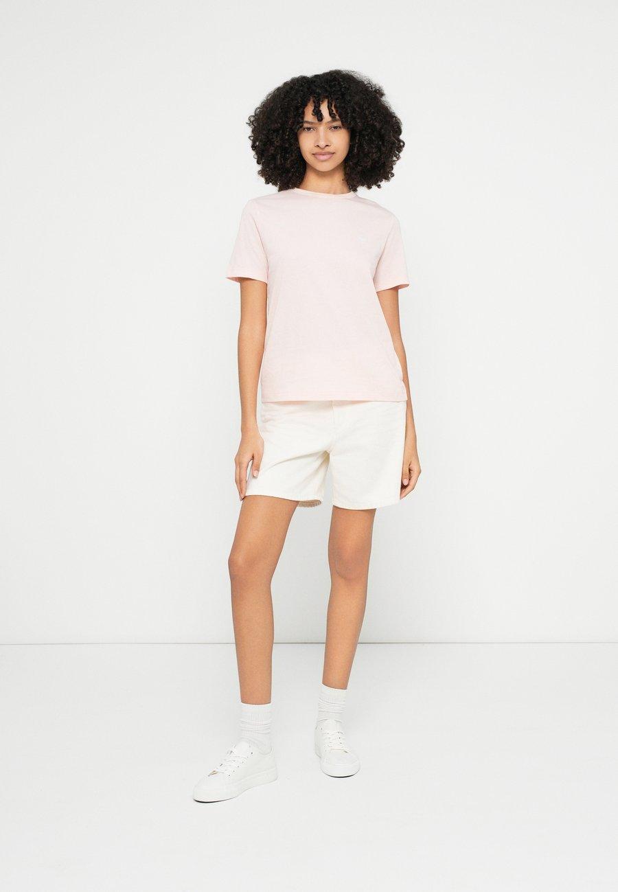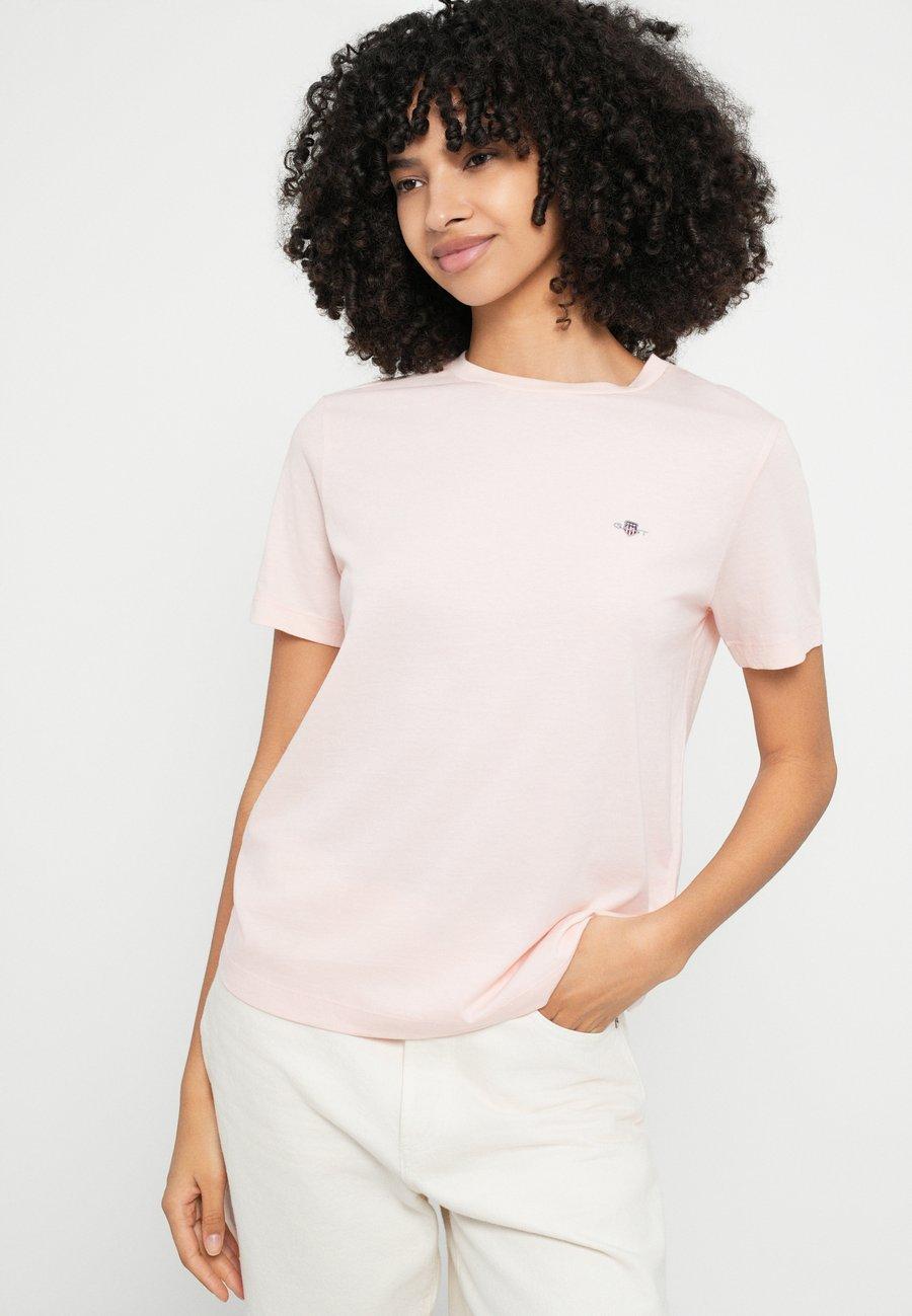 Небольшая этикетка-флажок на уровне груди. Вырез горловины: Круглый.Материал и уход