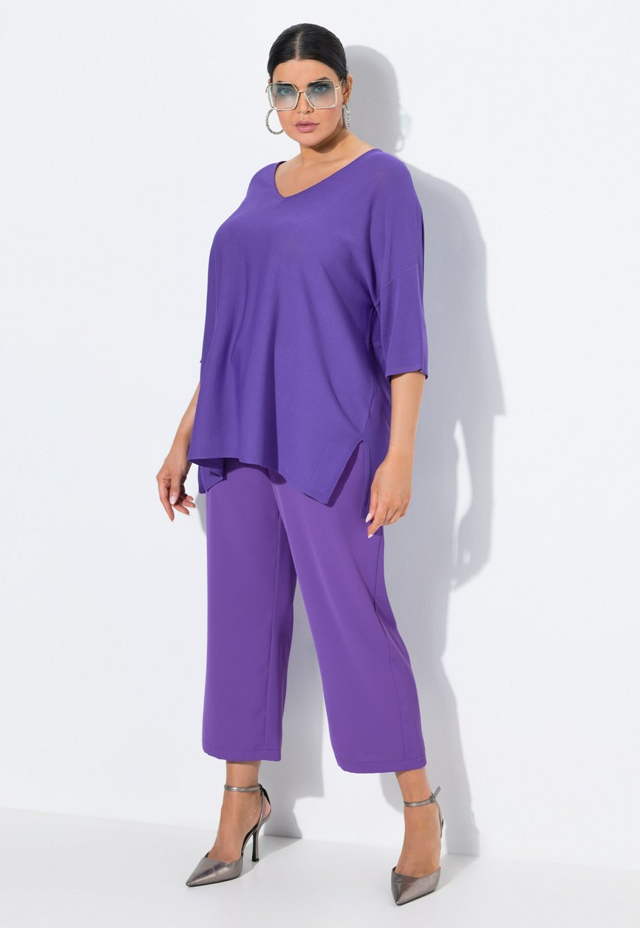 Брюки Ulla Popken 7/8 BÜGELFALTEN, ELASTIKBUND, BINDE, Amethist/Purple