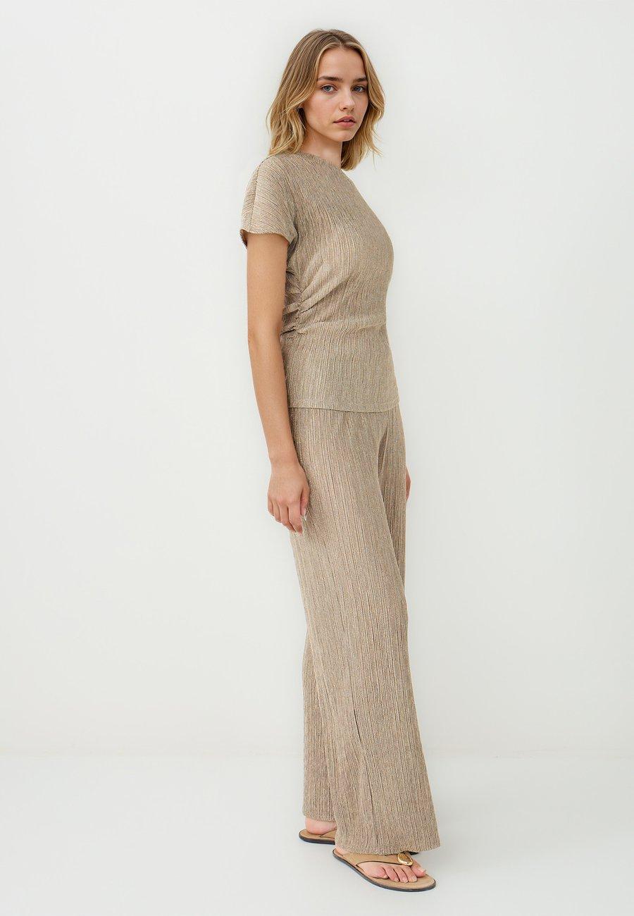 Бежевые трикотажные брюки стандартного кроя. Посадка: Нормальная.Материал и уход