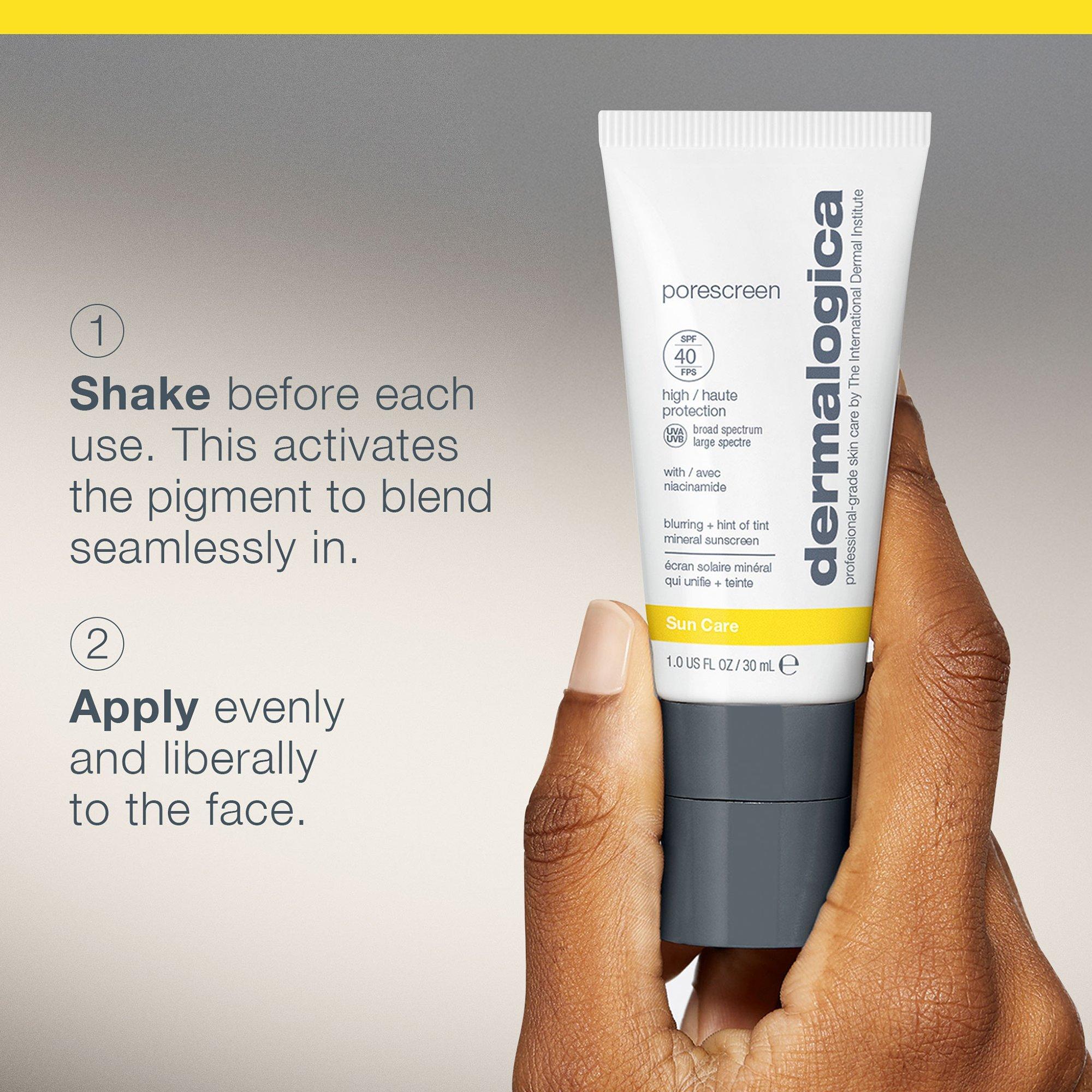 Хорошо встряхните перед каждым использованием. Наносите равномерное количество крема Porescreen SPF 40 на лицо после увлажнения каждое утро. Используйте в качестве последнего шага в вашей программе ухода за кожей поверх увлажняющего крема.Ингредиенты