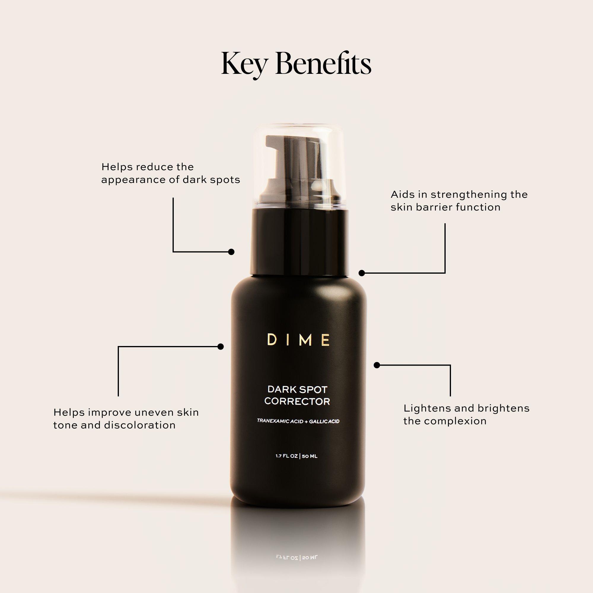 - Транексамовая кислота: Транексамовая кислота, полученная из аминокислоты лизина, является осветляющим кожу агентом, который помогает уменьшить видимость темных пятен. Она также помогает улучшить неровный тон кожи и уменьшить пигментацию. Было даже показано, что она укрепляет и улучшает барьерную функцию кожи.