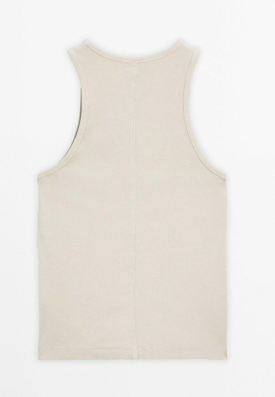 Топ из смесовой хлопковой ткани. Без рукавов. Ребристая отделка. Воротник-стойка. Вырез: Круглый.Материал и уход