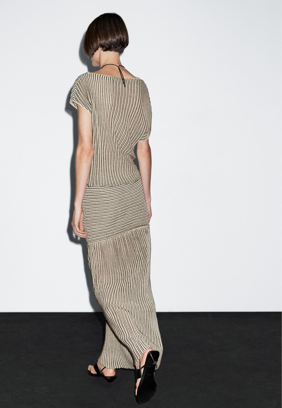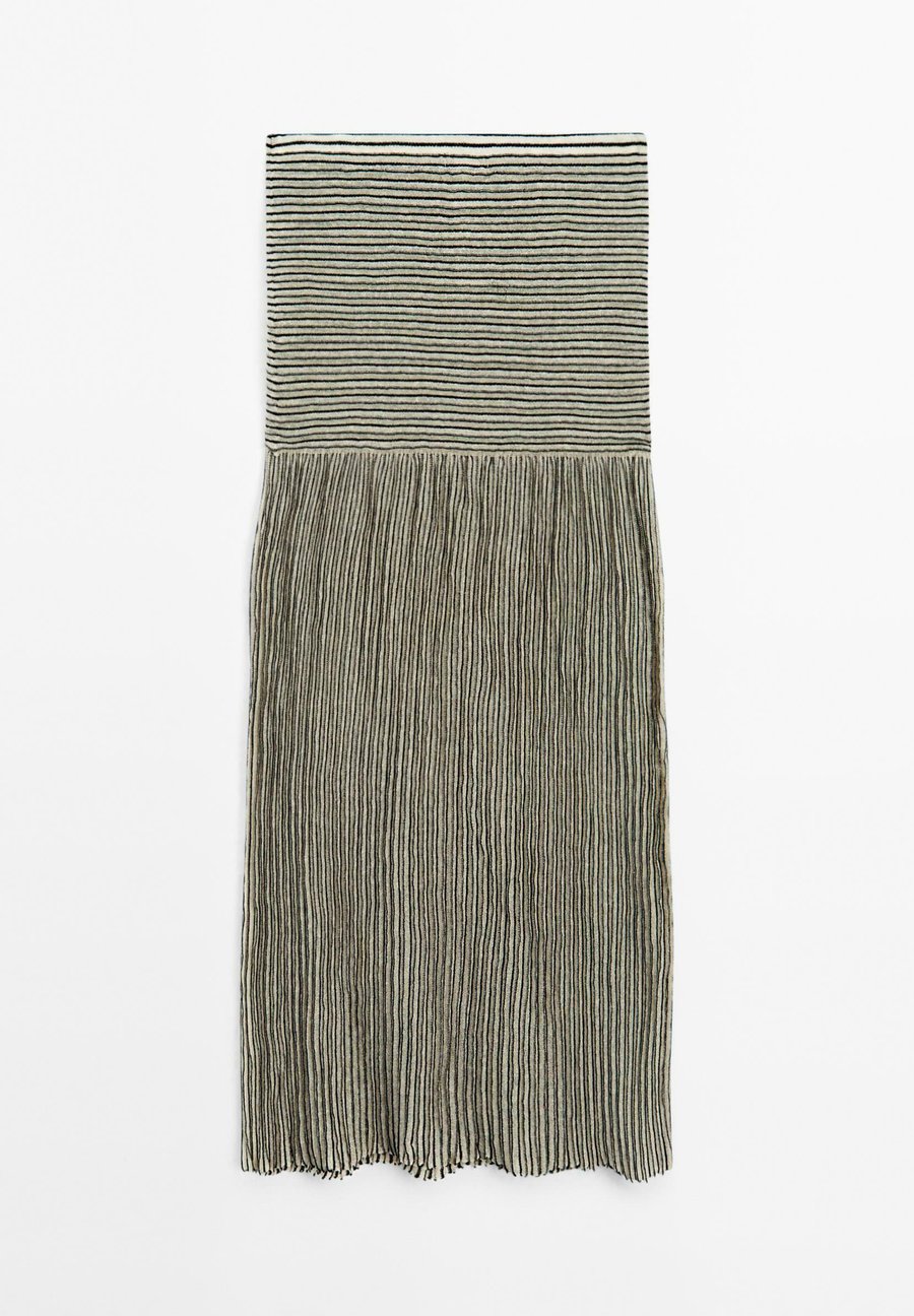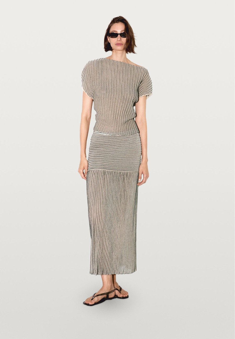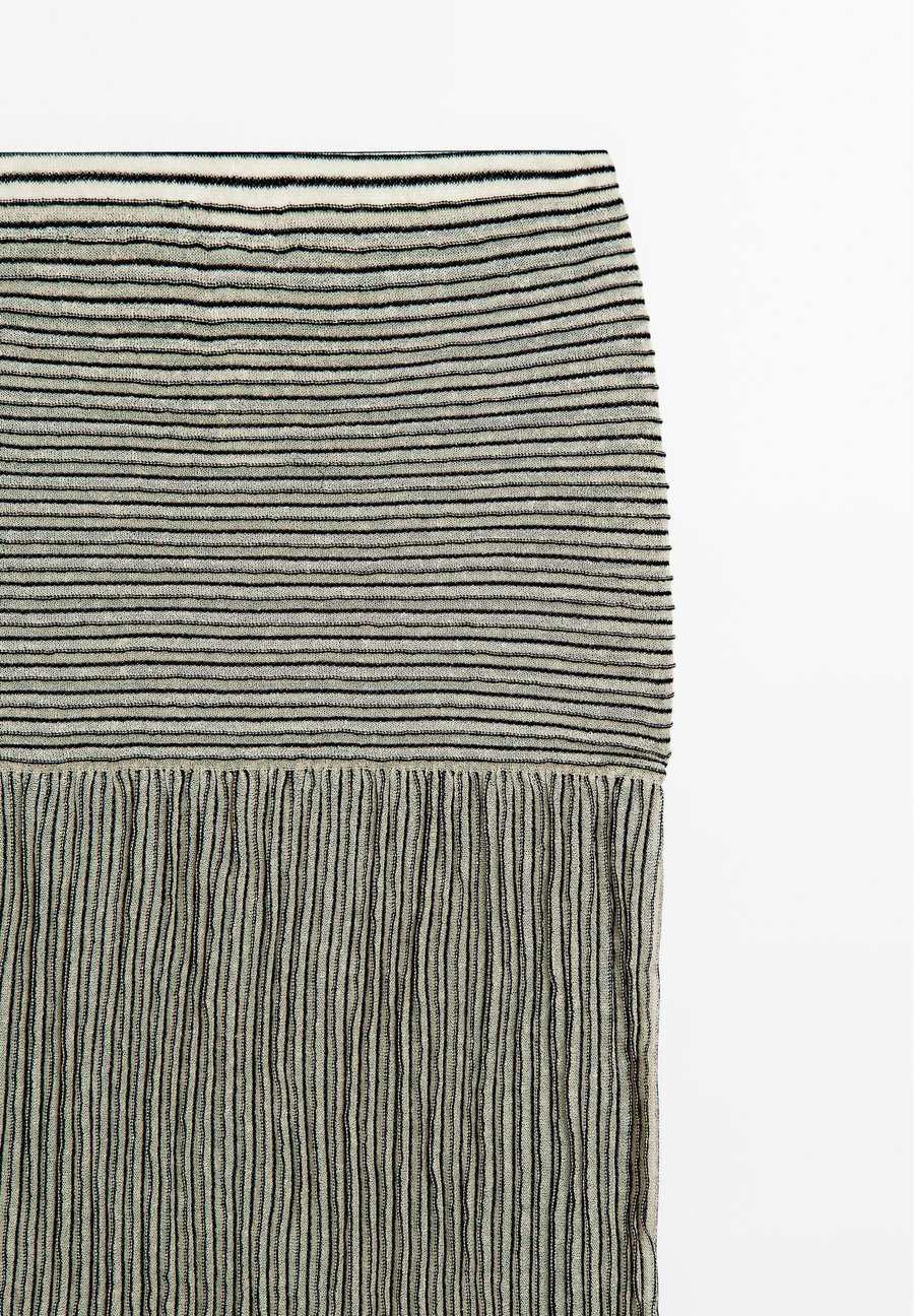 Полосатый принт. Складки. В наличии подходящее изделие. Длинная трикотажная юбка. Эластичный пояс. Узор: ПолосатыйМатериал и уход