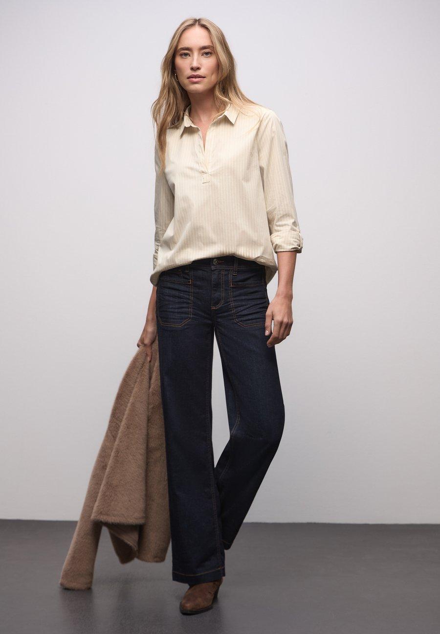 Эта длинная блузка-рубашка от Street One для женщин сочетает в себе классический полосатый узор и крой, подчеркивающий фигуру. Воротник-рубашка, застежка на пуговицы и боковые разрезы по закругленному низу подчеркивают элегантный вид. Эластичная хлопковая смесь обеспечивает комфорт и приятную посадку. Идеально подходит для стильных офисных образов с современным акцентом. Вырез: V-образныйМатериал и уход