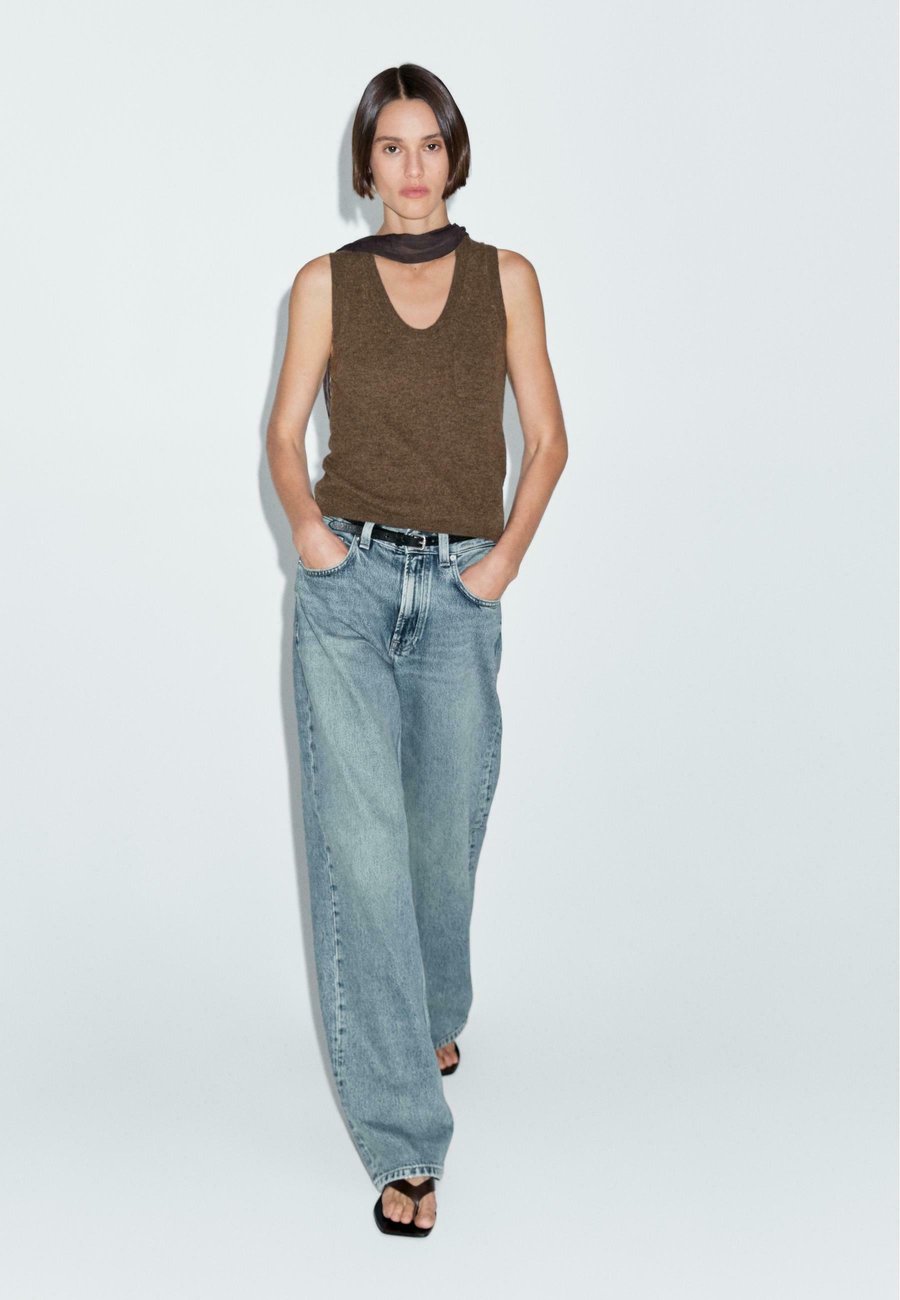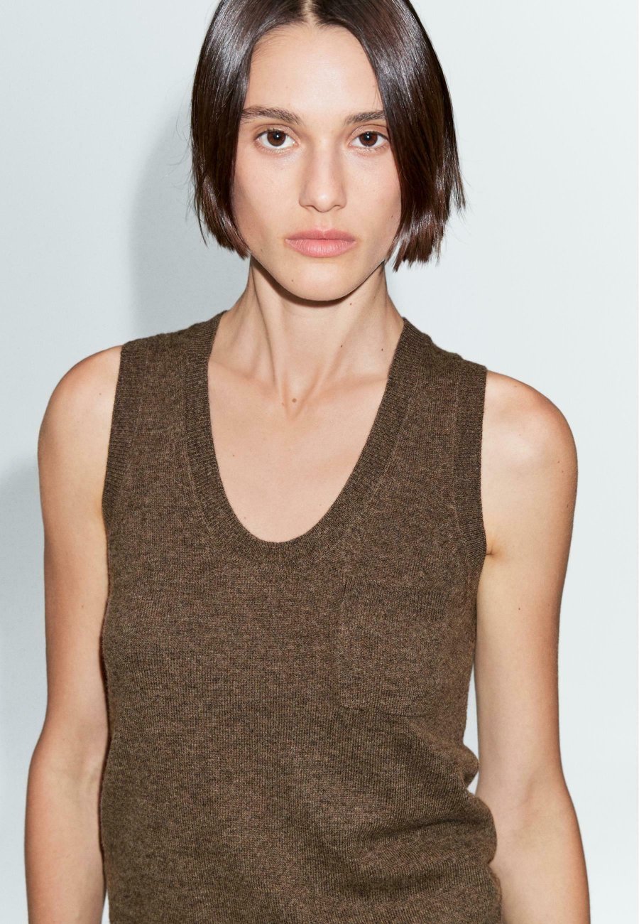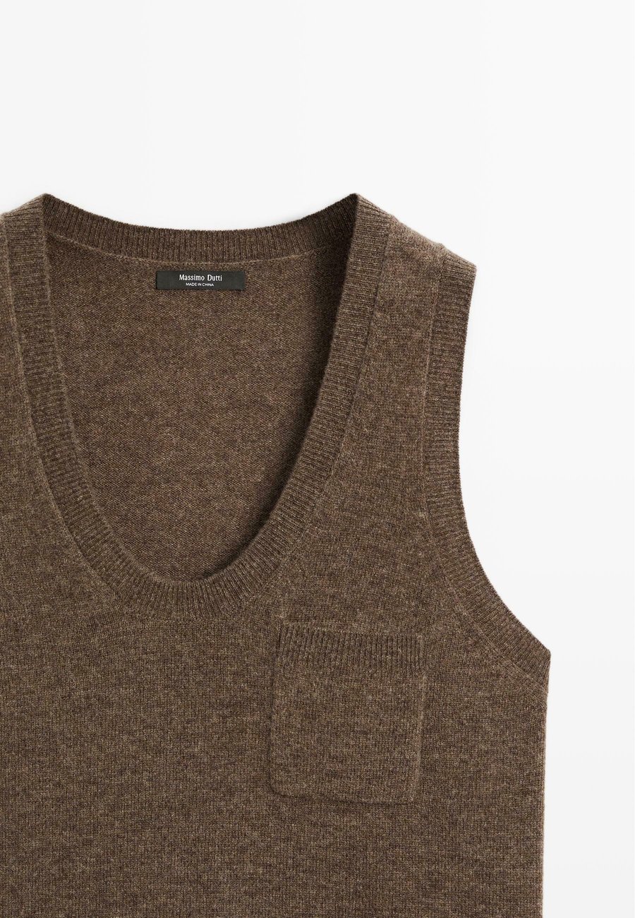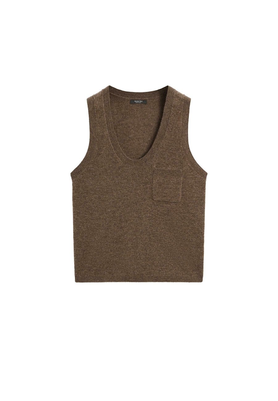 Без рукавов. Круглый вырез. Ребристая отделка. Один накладной карман. Трикотажный топ из шерстяной смеси. Вырез горловины: Круглый.Материал и уход