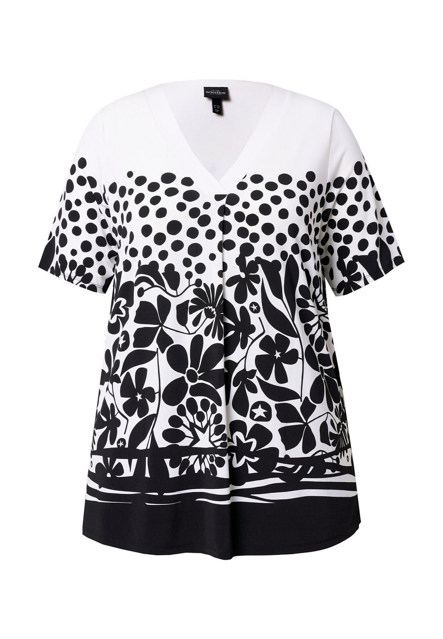 Футболка Ulla Popken FLOWER SHORT SLEEVE SLINKY, Snow White/White